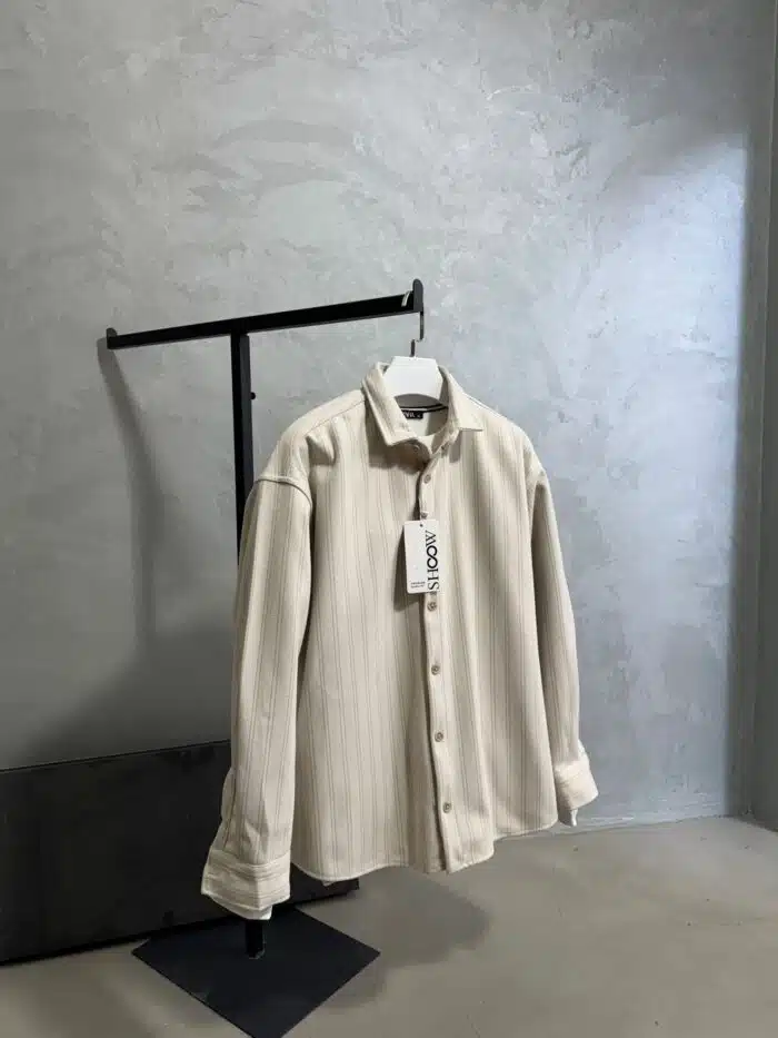 Çizgili Ultra Kalın Kışlık %100 Pamuk Gömlek – Bej
