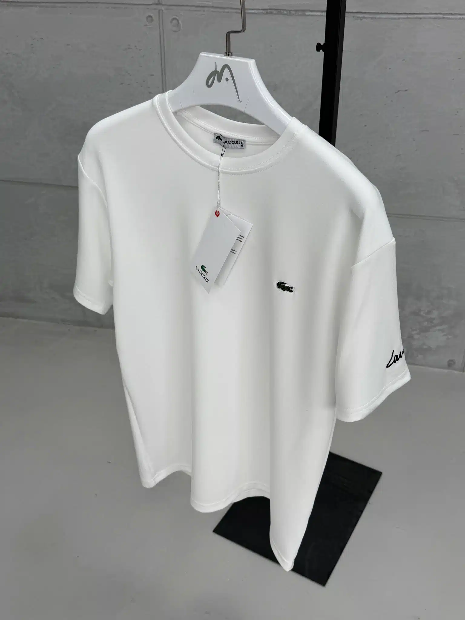 LCST Nakış Kol Detaylı Bisiklet Yaka Tshirt – Beyaz