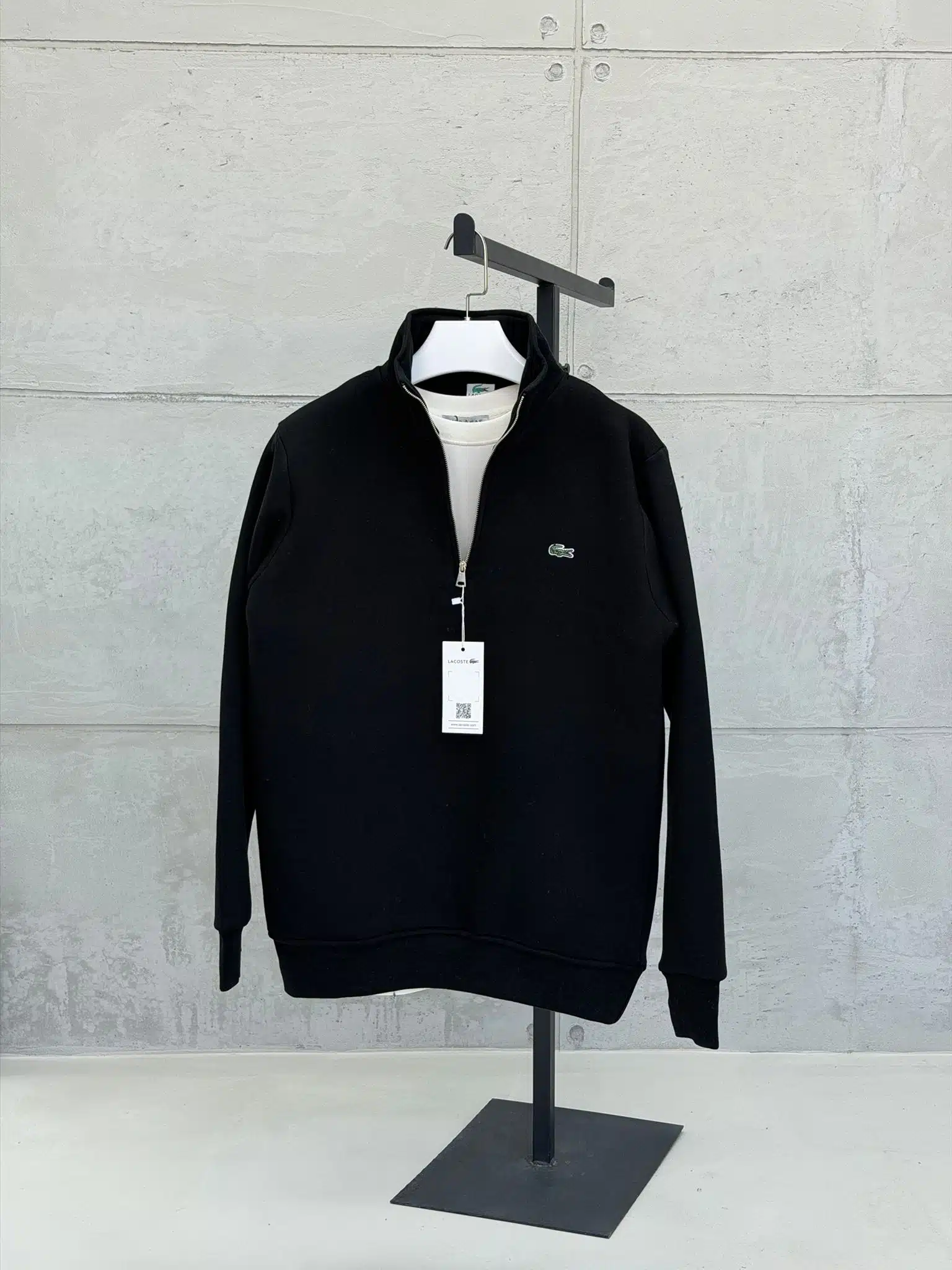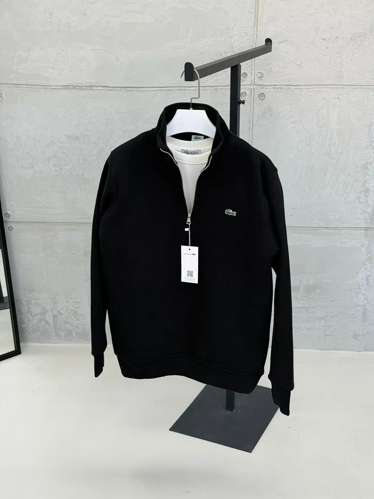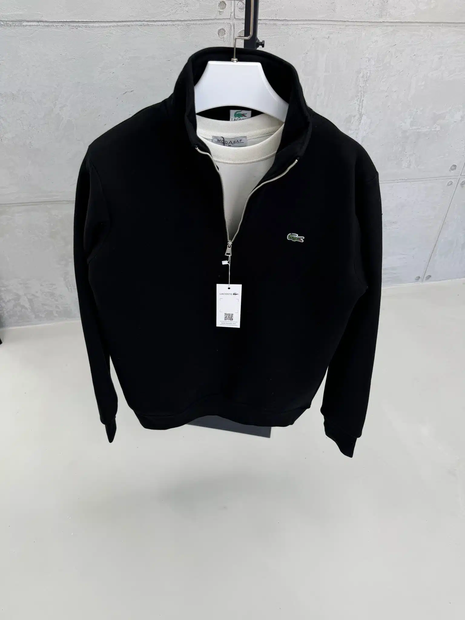 LCST Nakışlı Üç İplik Yarım Fermuarlı Sweatshirt – Siyah