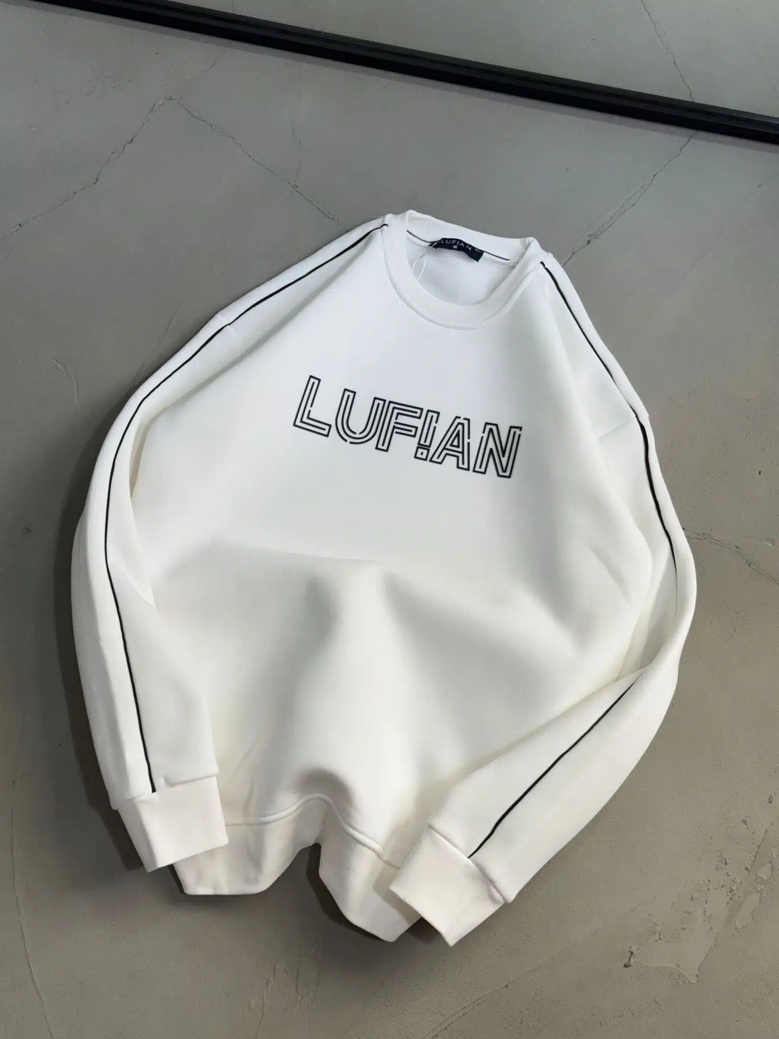 LFN Enjeksiyon Baskı Üç İplik Şeritli Sweatshirt – Beyaz