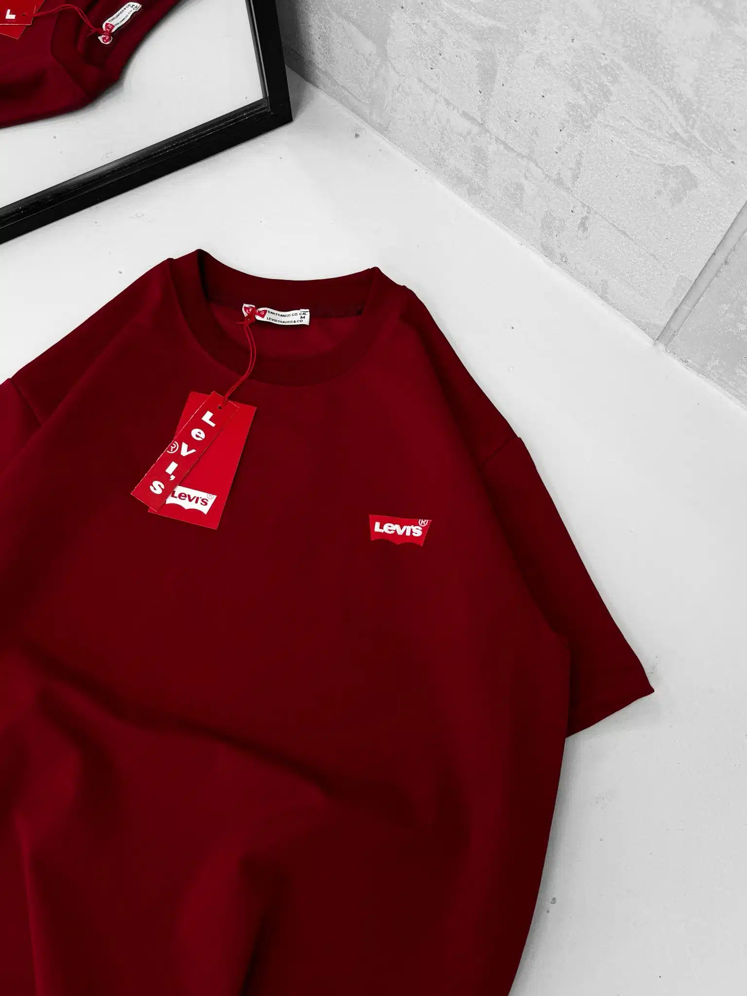 LVS Sırt Kabartma Baskı Detaylı Bisiklet Yaka Tshirt – Bordo