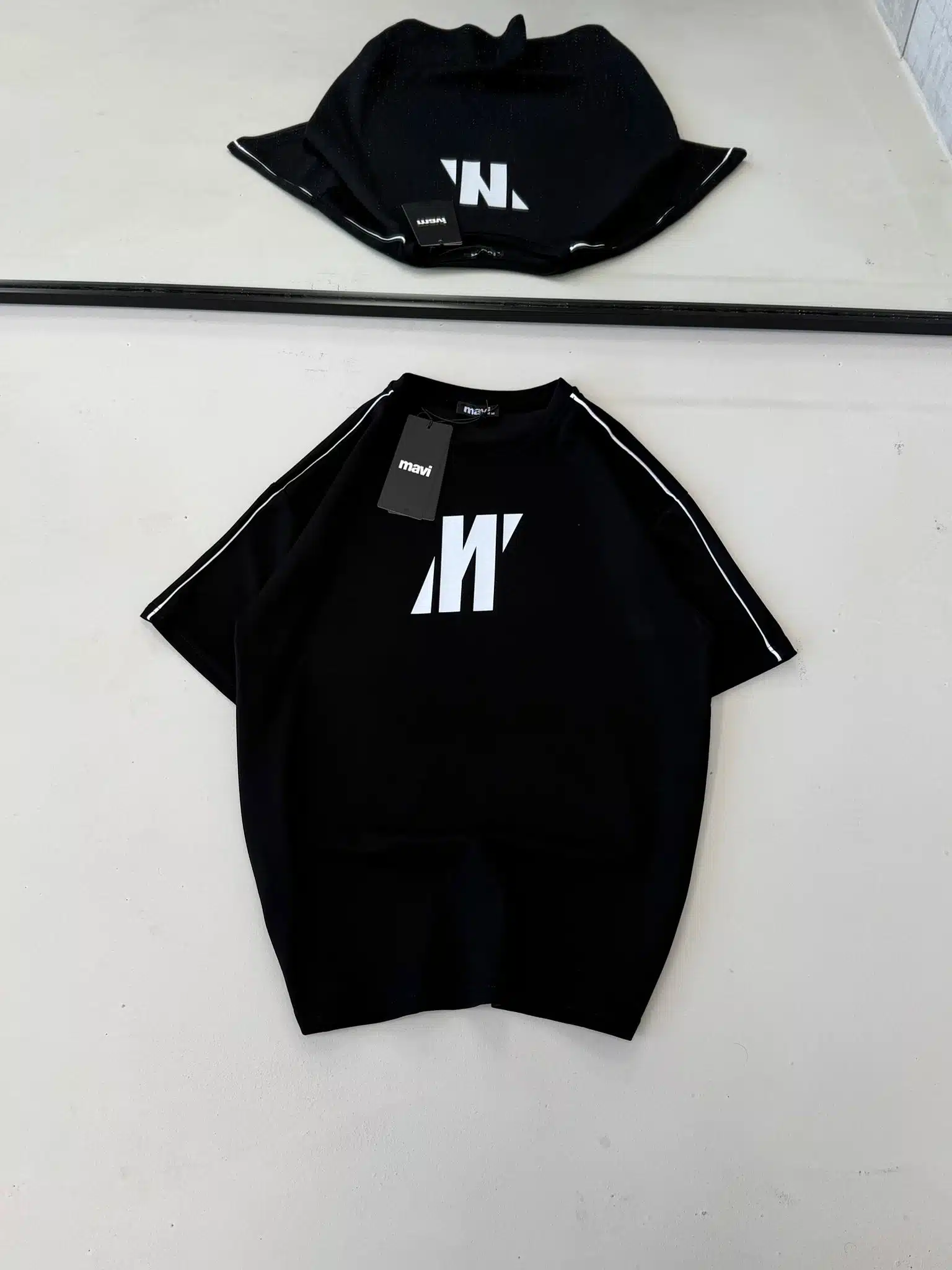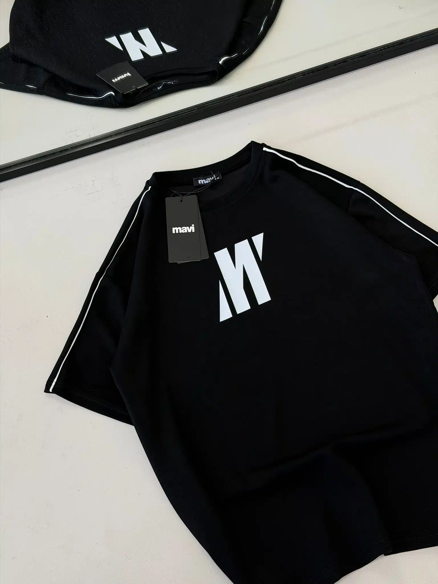 Anasayfa » Mağaza » M Baskılı Şerit Detaylı Bisiklet Yaka Tshirt – Siyah