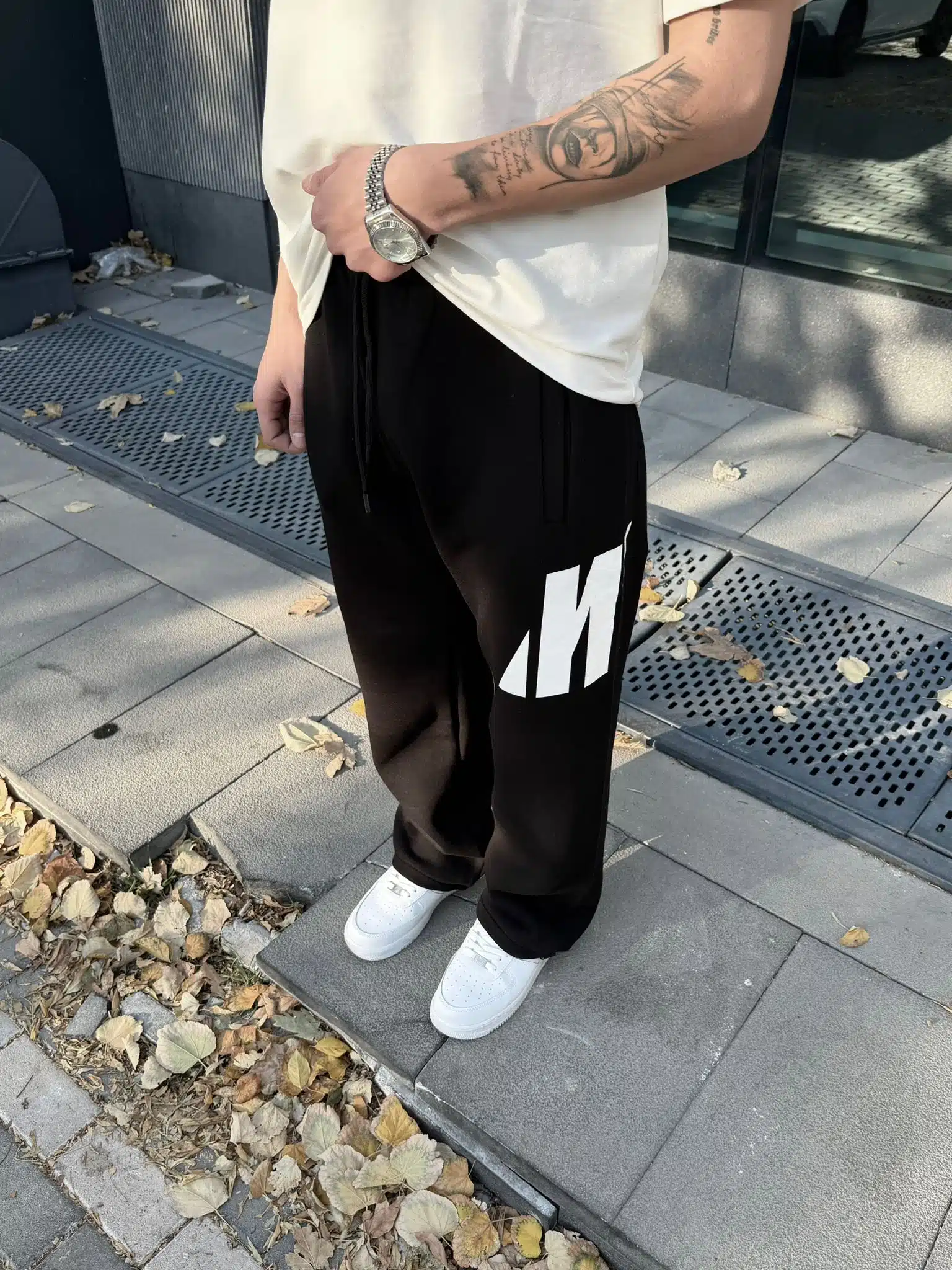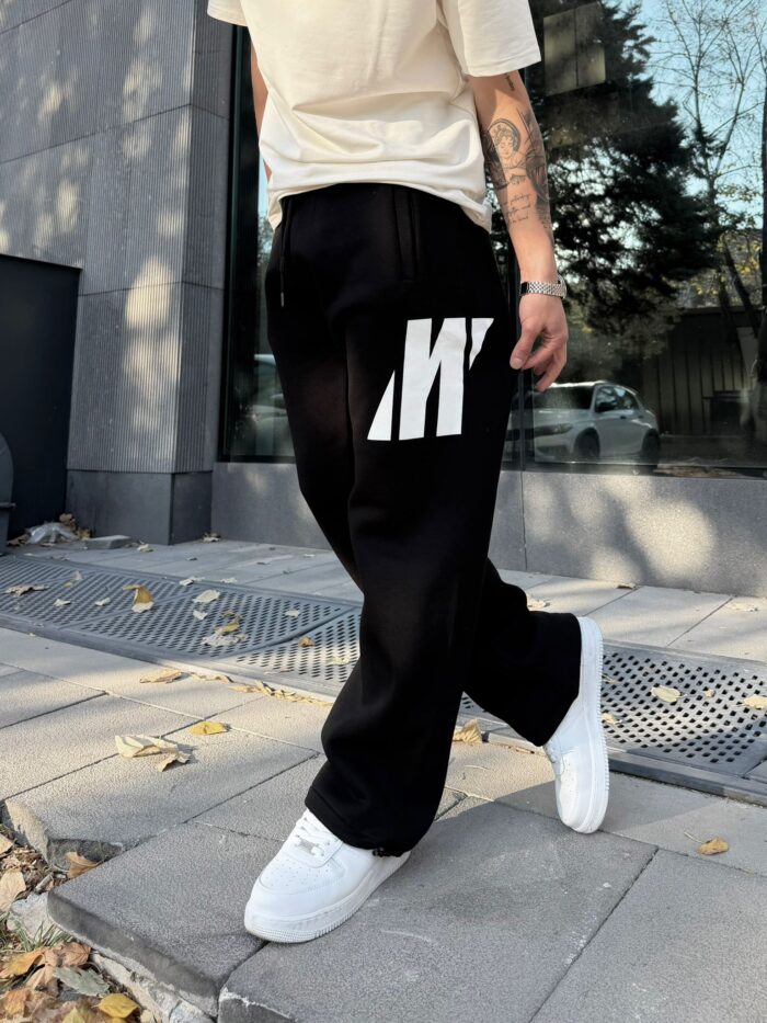 ‘M’ Büyük Baskılı Lastikli Stoper Paça Baggy Eşofman – Siyah