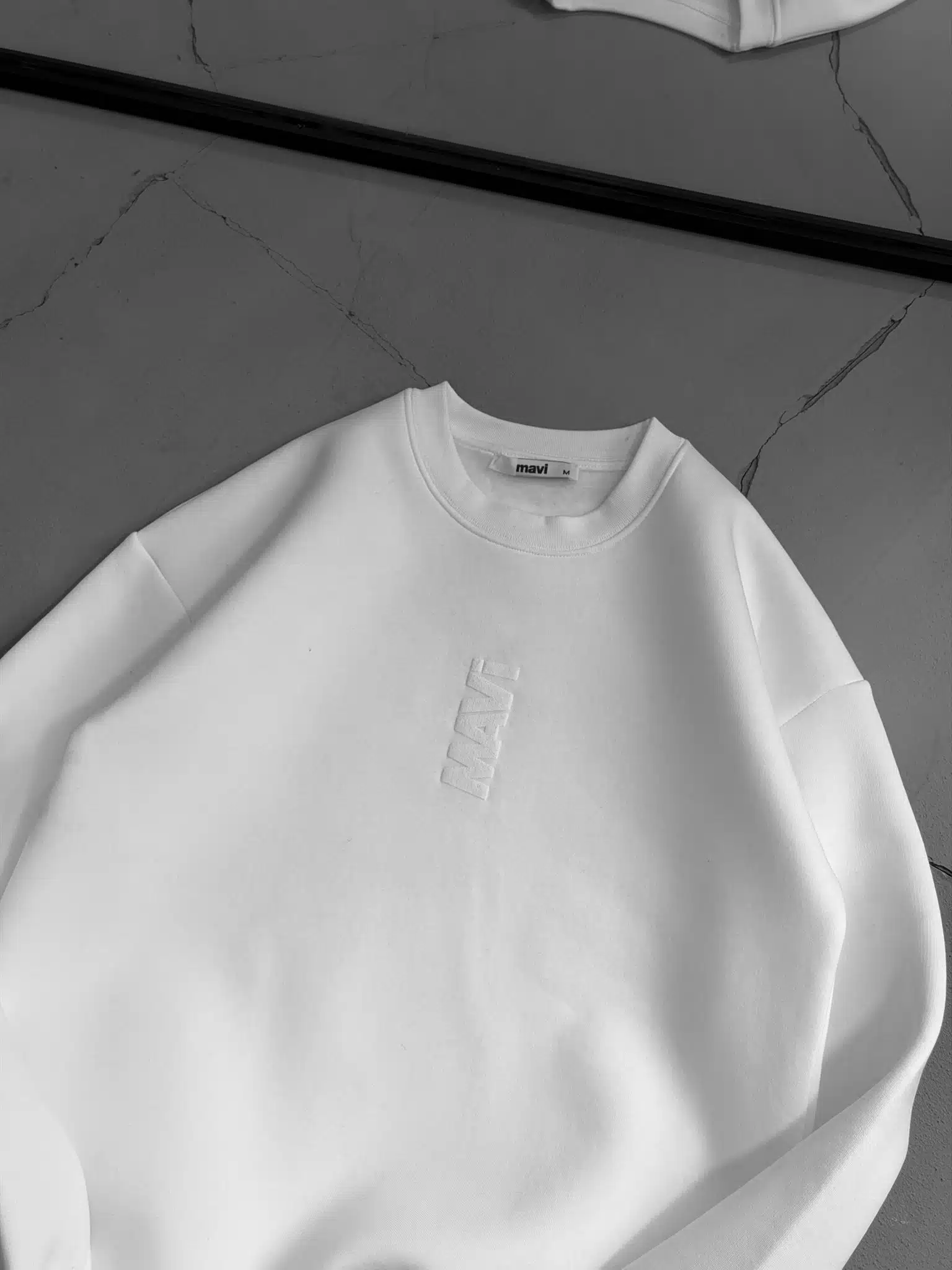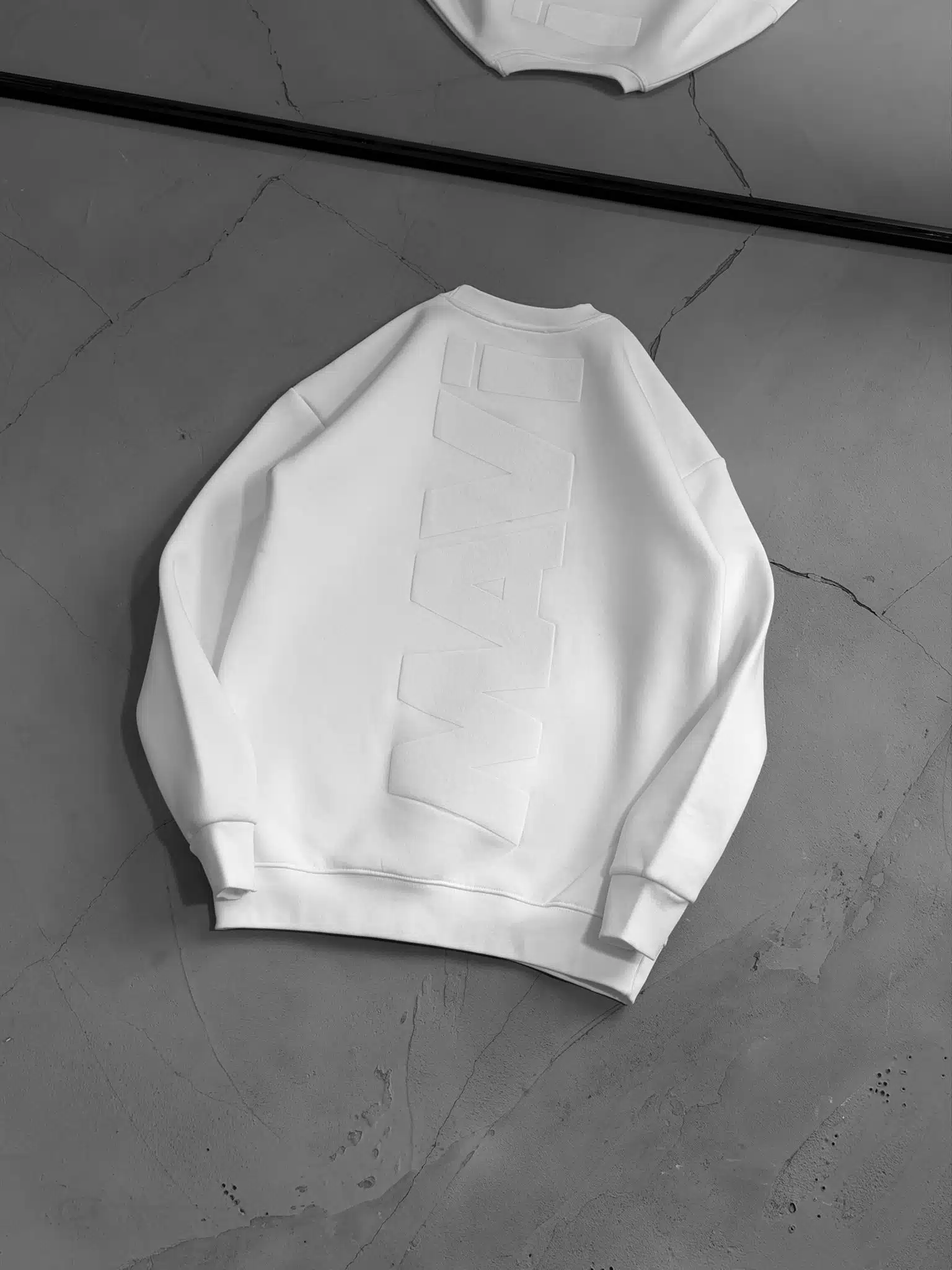 M Büyük Kabartma Sırt Baskılı Üç İplik Sweatshirt – Beyaz