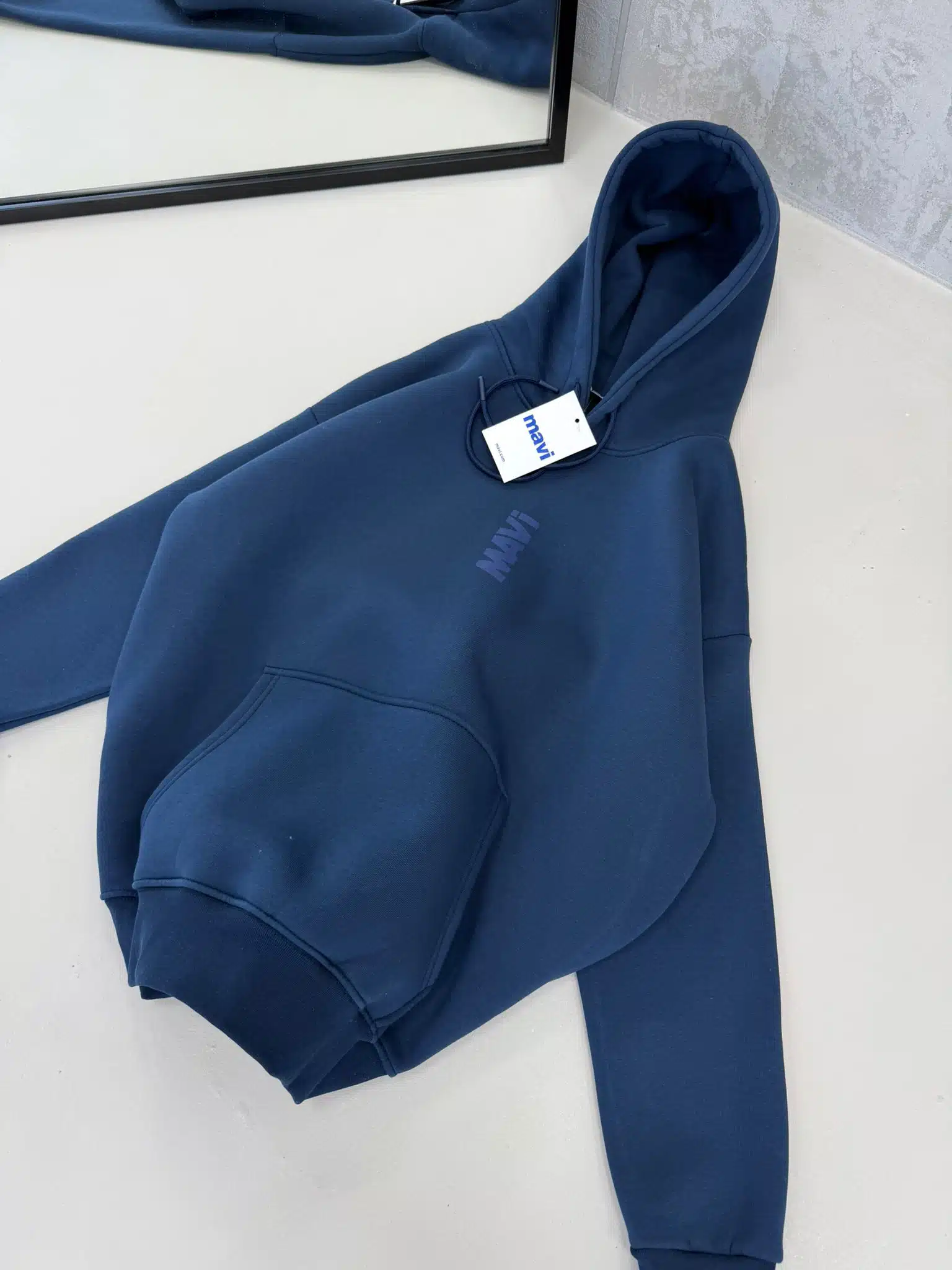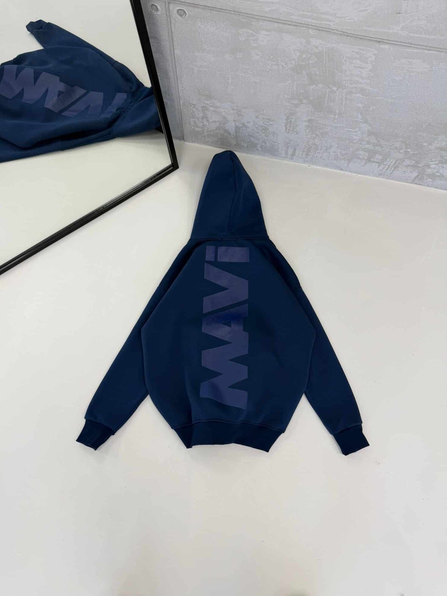 M Büyük Kabartma Sırt Baskılı Kapşonlu Üç İplik Sweatshirt – Lacivert
