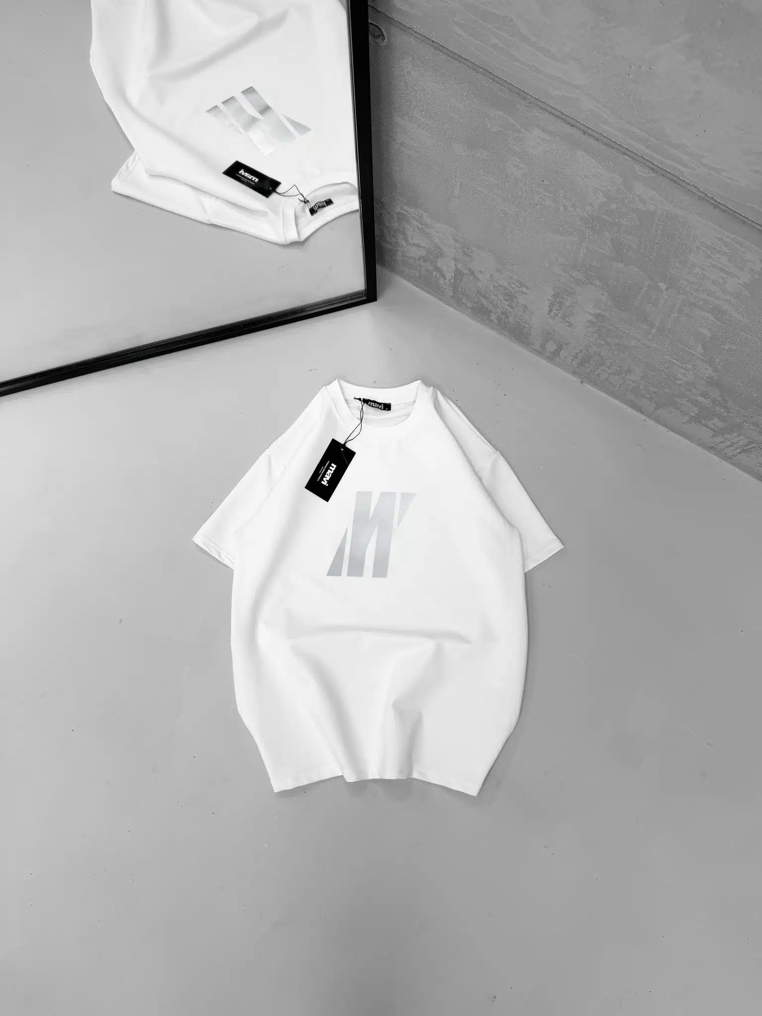 M Büyük Reflektör Detaylı Bisiklet Yaka Tshirt -Beyaz