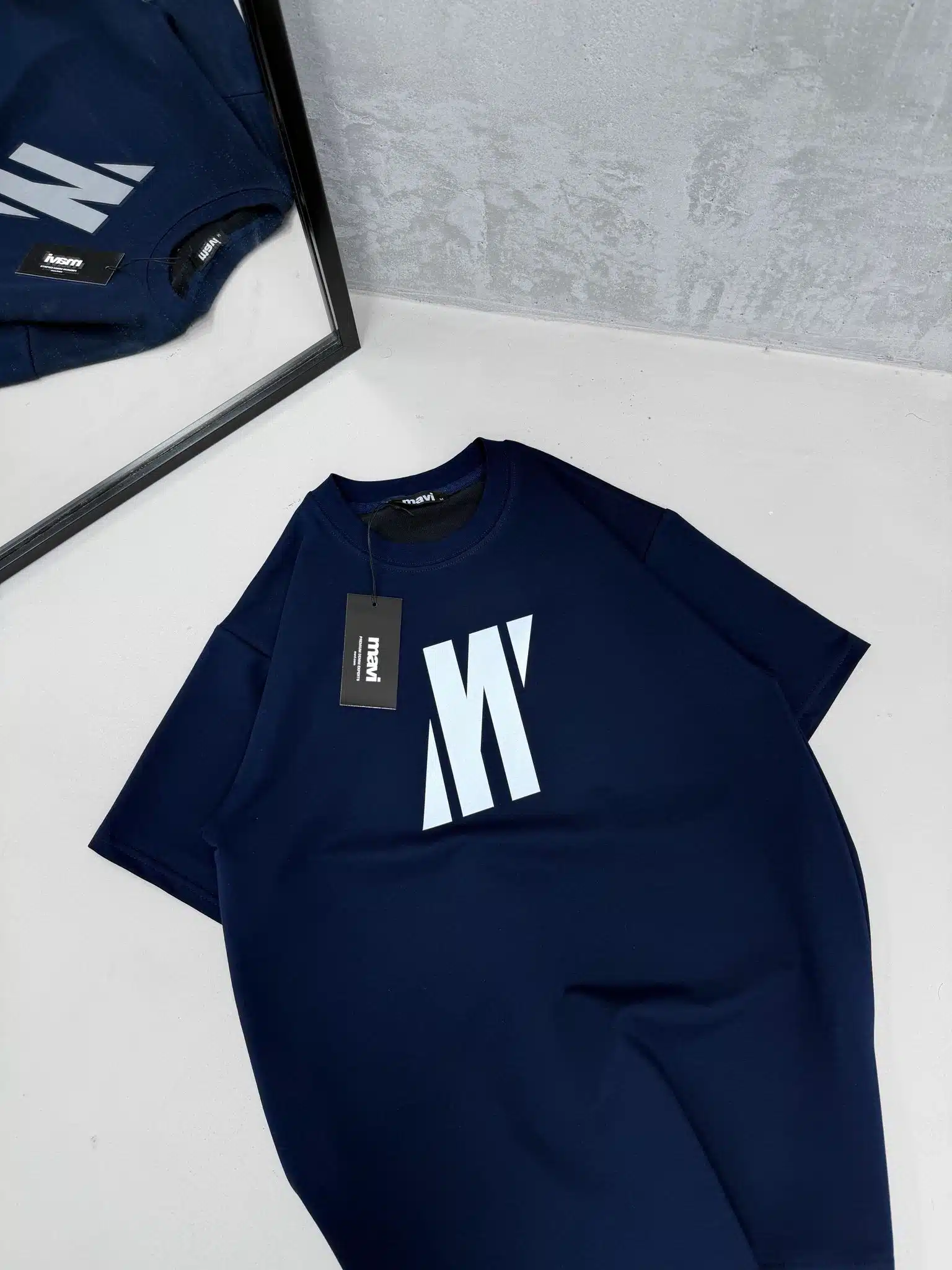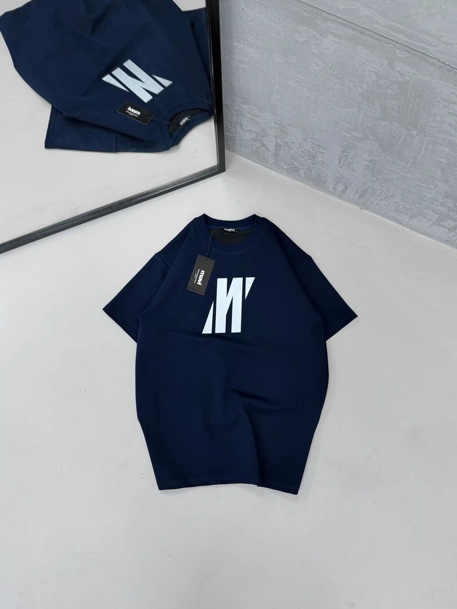 M Büyük Reflektör Detaylı Bisiklet Yaka Tshirt -Lacivert