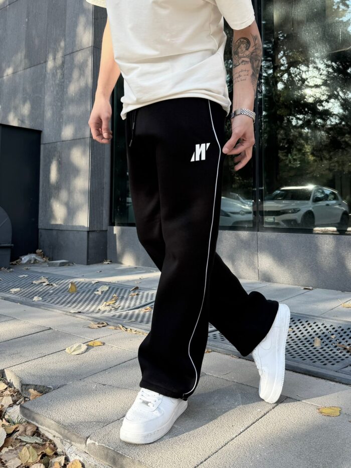 ‘M’ Enjeksiyon Baskılı Çizgili Lastikli Stoper Paça Baggy Eşofman – Siyah