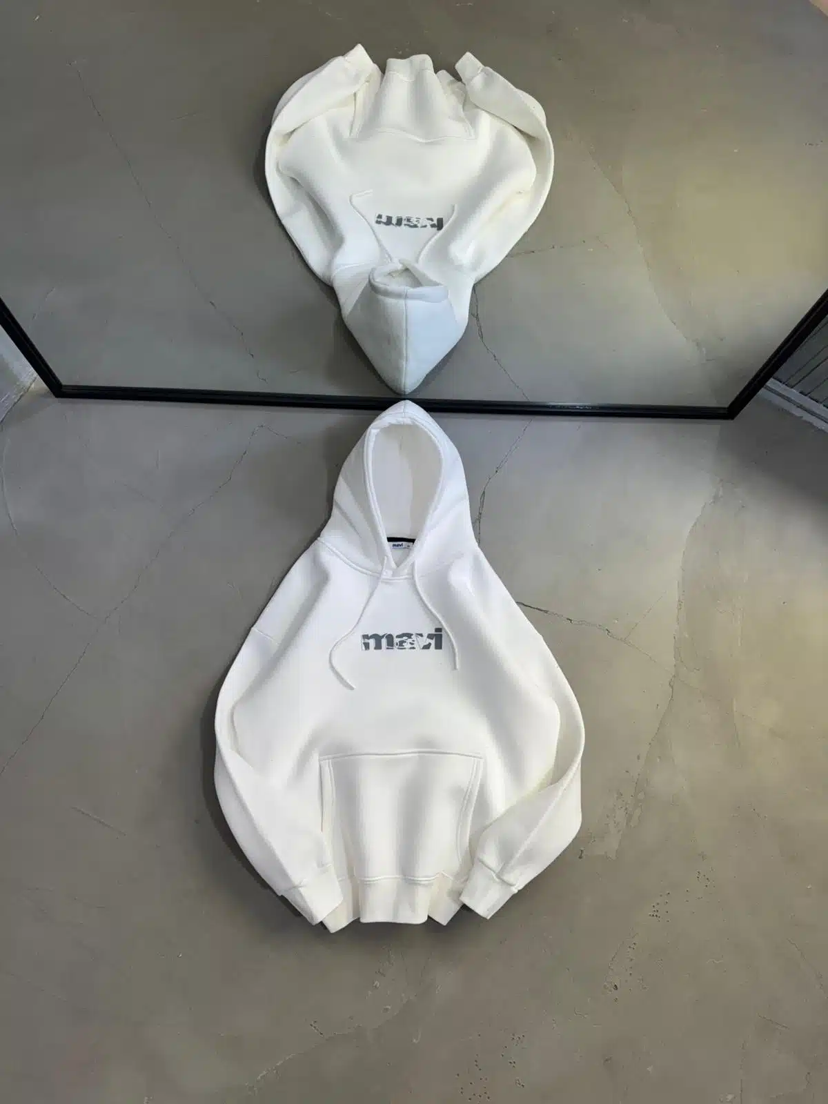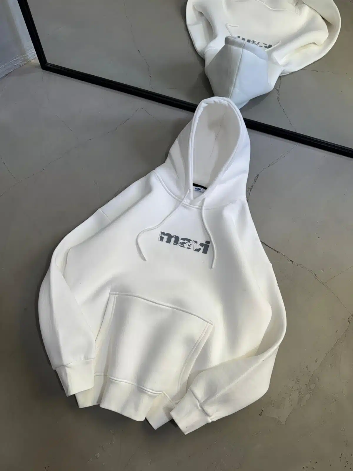 M Enjeksiyon Baskılı Kapşonlu Sweatshirt – Beyaz