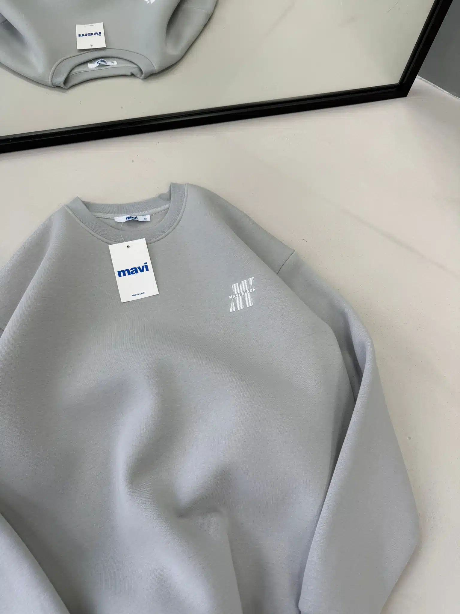 M Enjeksiyon Baskılı Üç İplik Sweatshirt – Gri