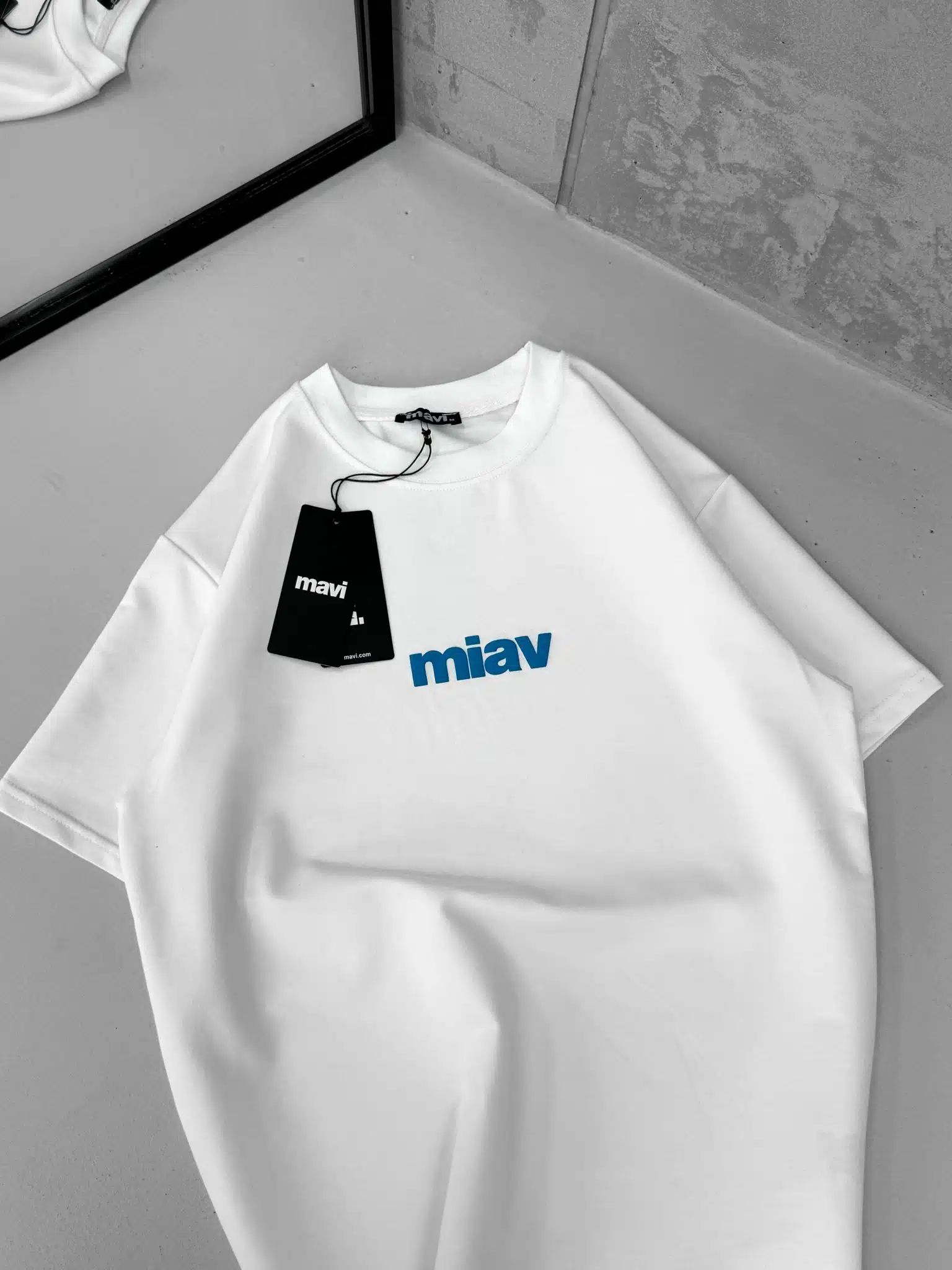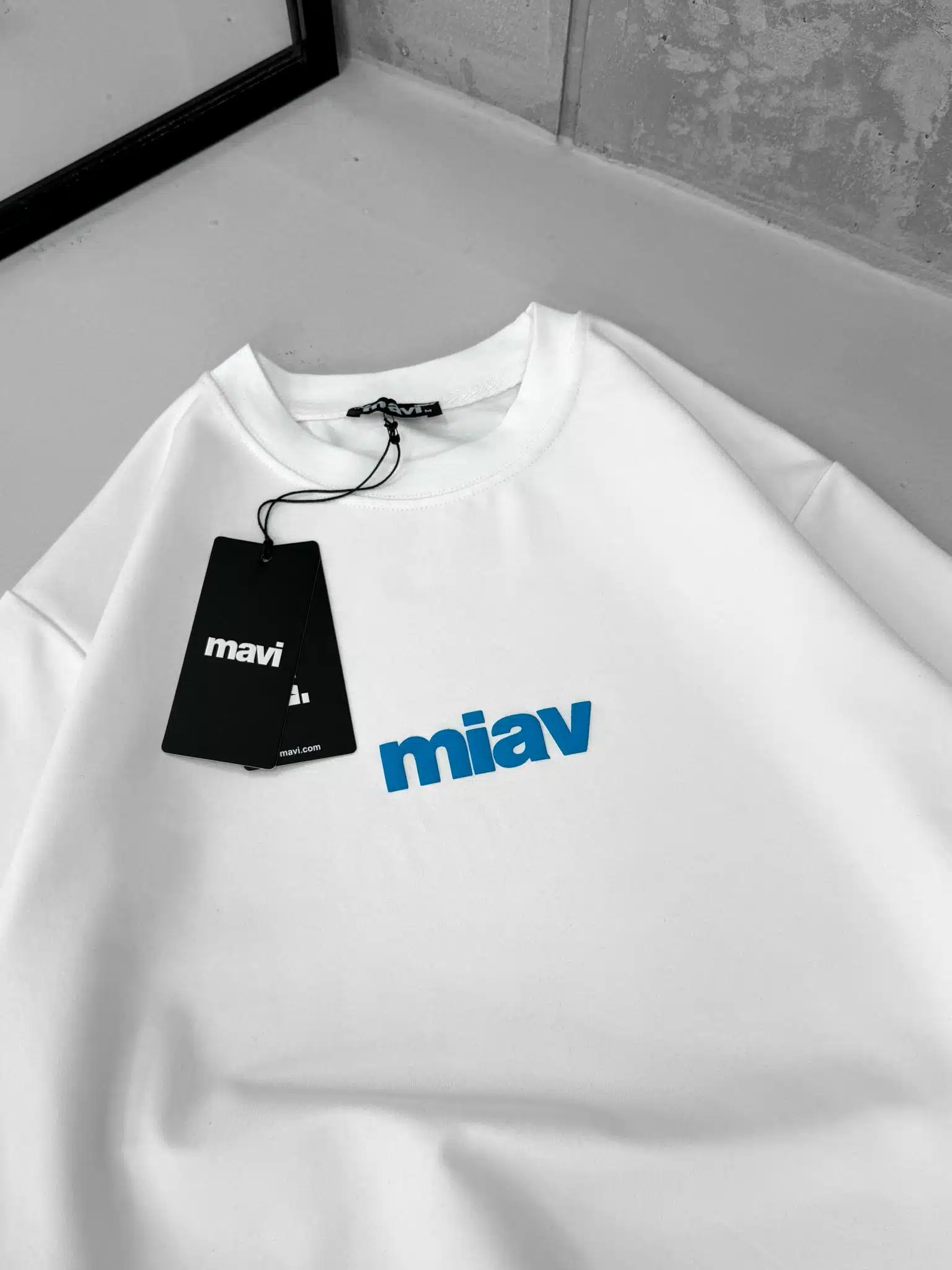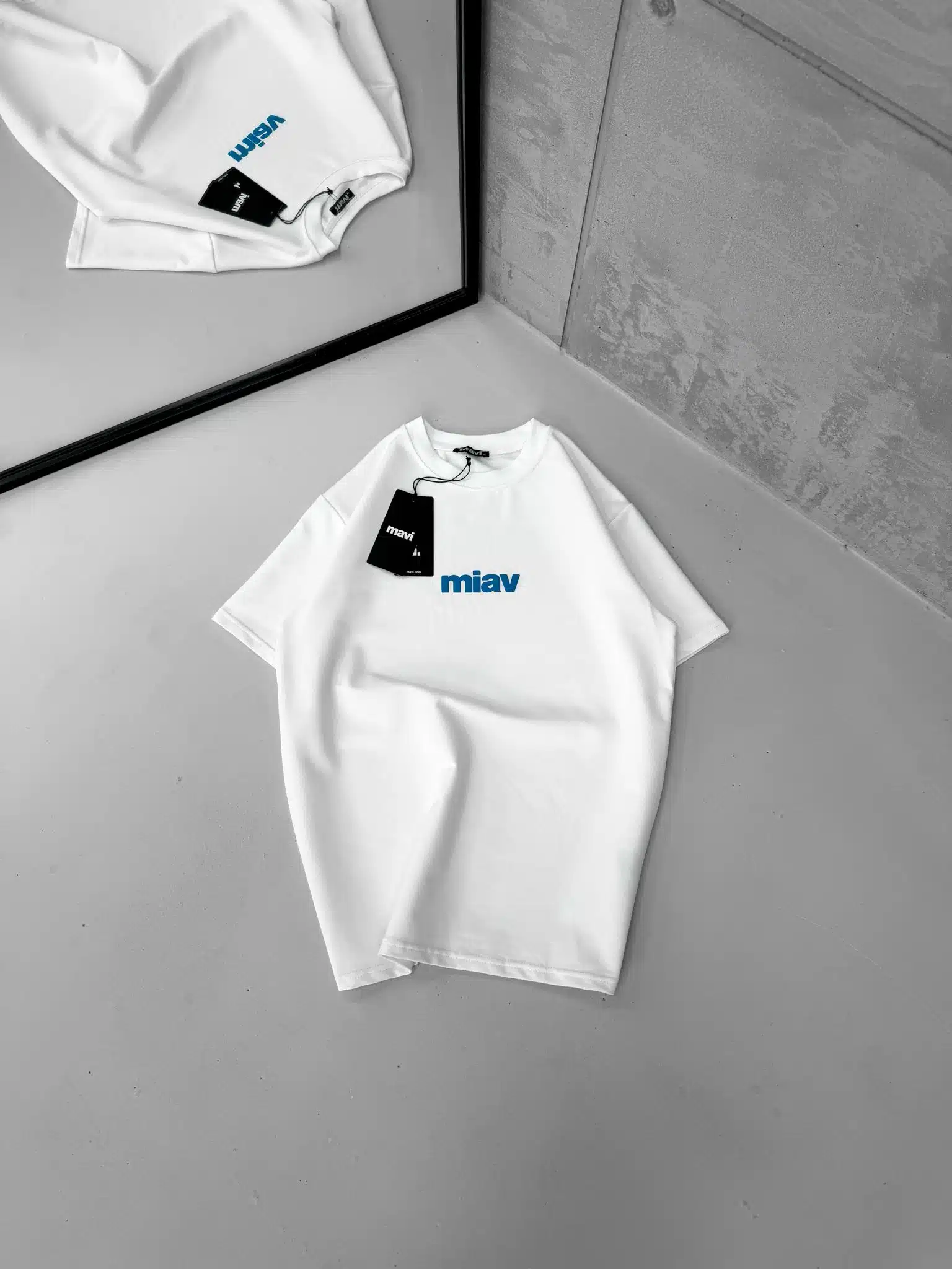 M Kabartma Baskı Detaylı Bisiklet Yaka Tshirt – Beyaz