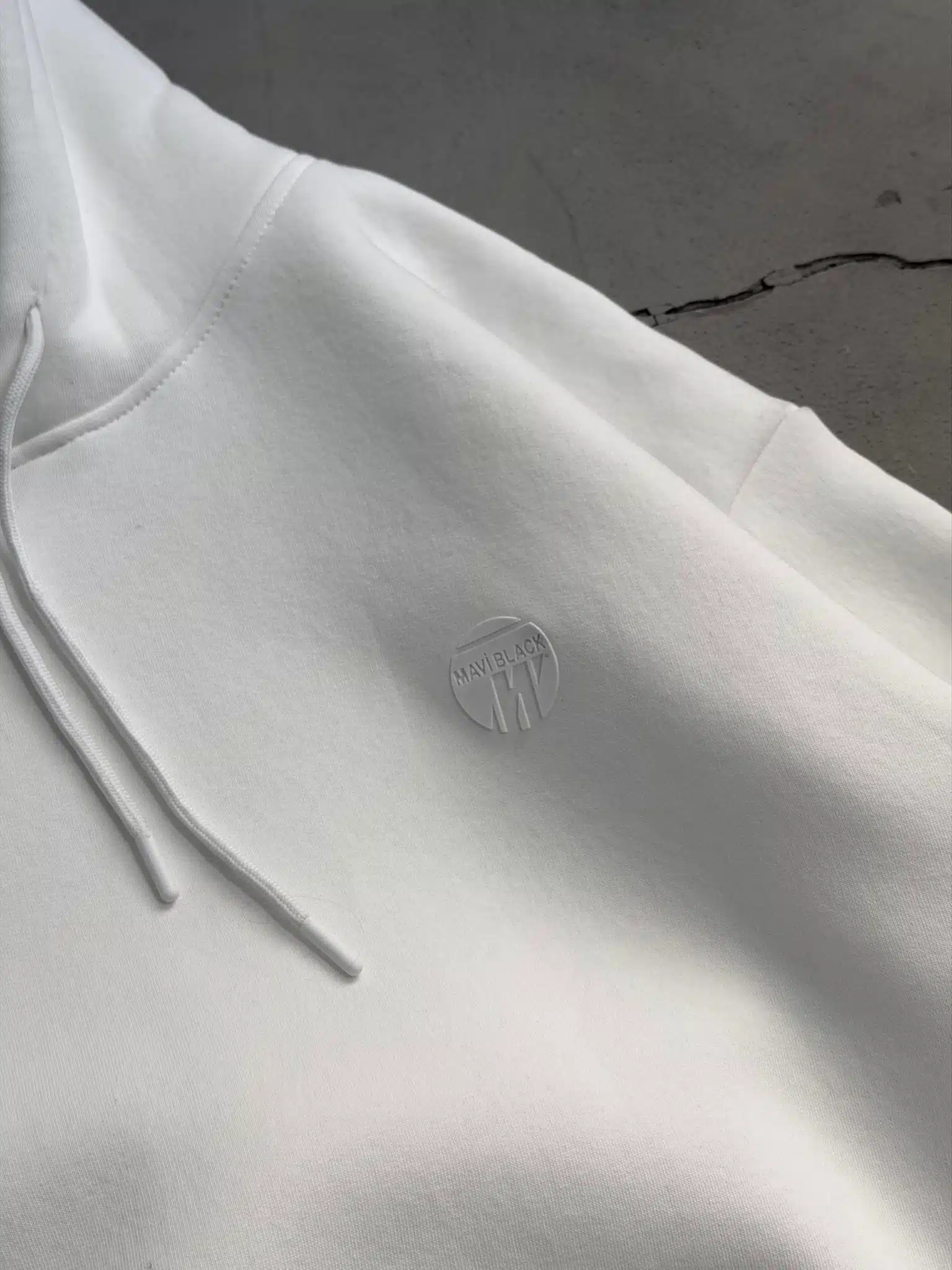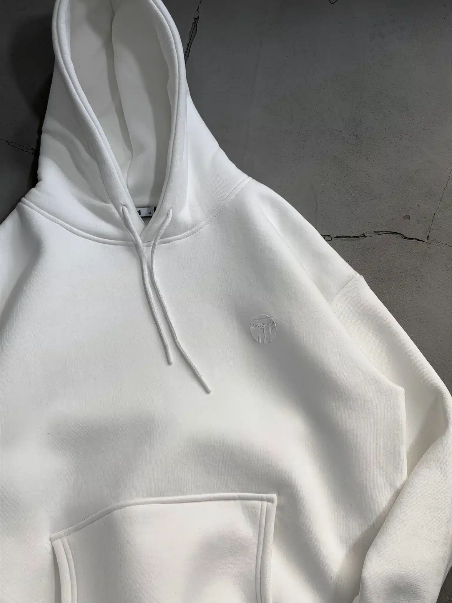 M Küçük Enjeksiyon Baskılı Üç İplik Kapşonlu Sweatshirt – Beyaz