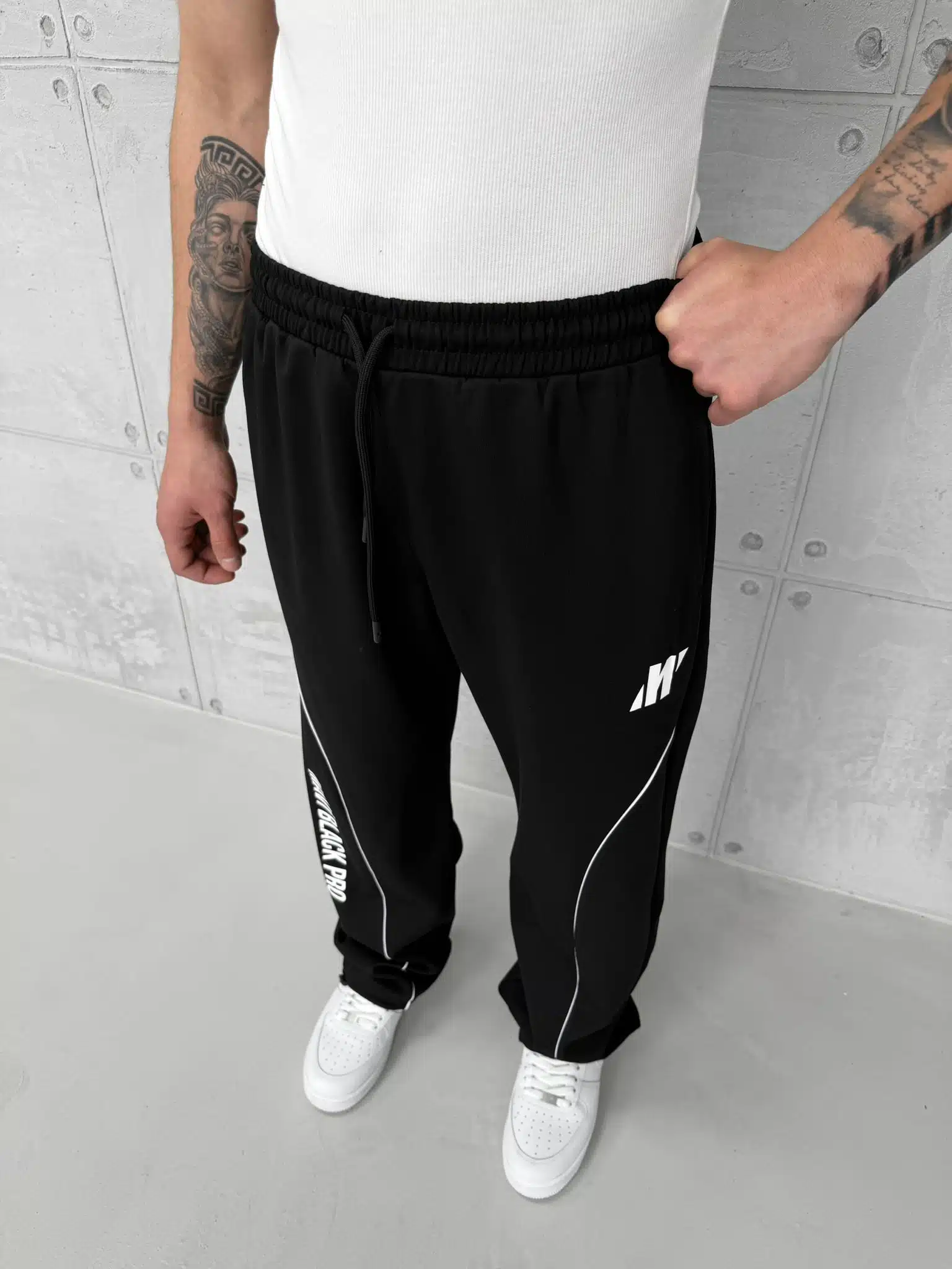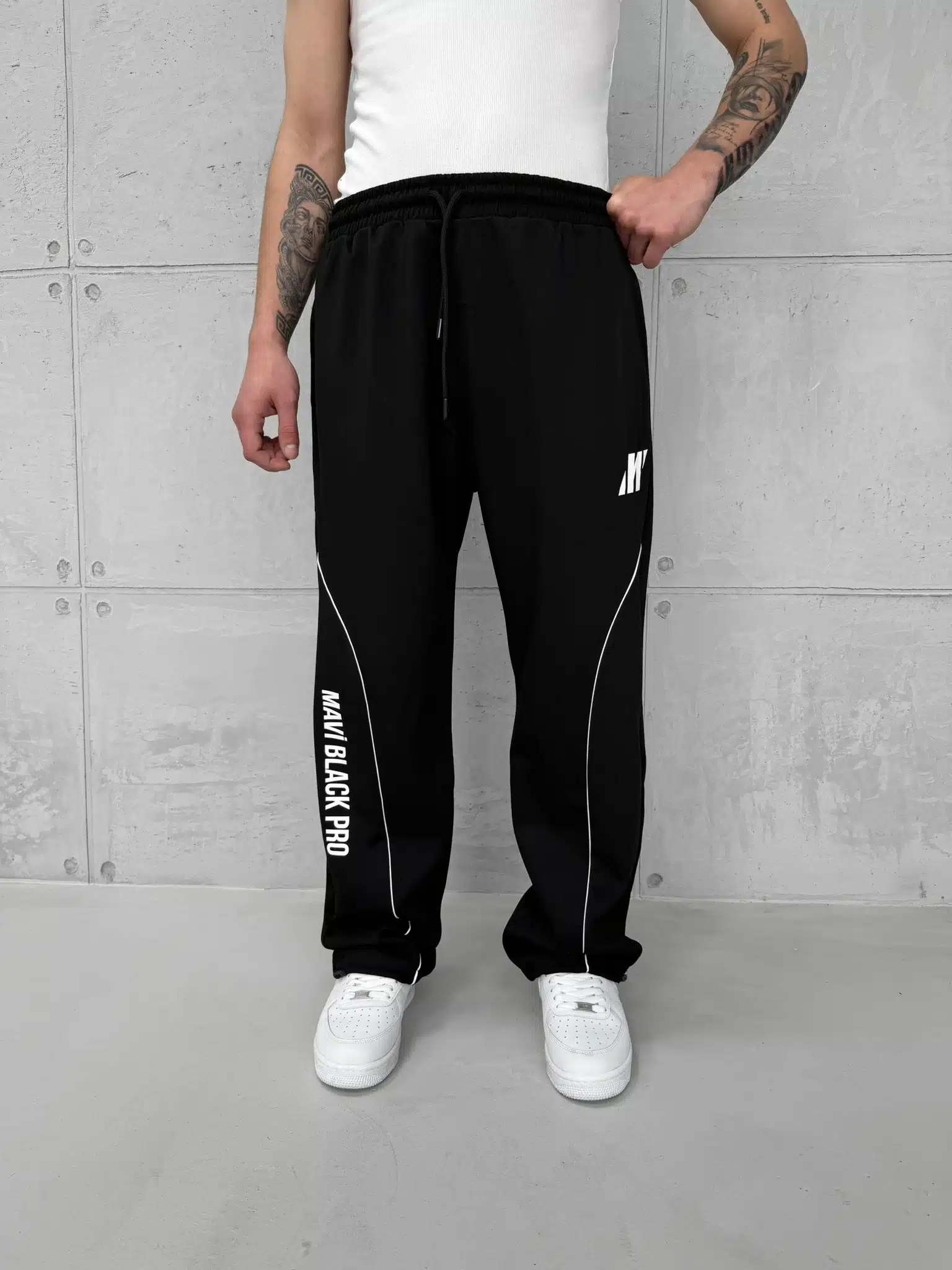 M Logolu Yarım Şeritli Stoper Paça Baggy Eşofman – Siyah