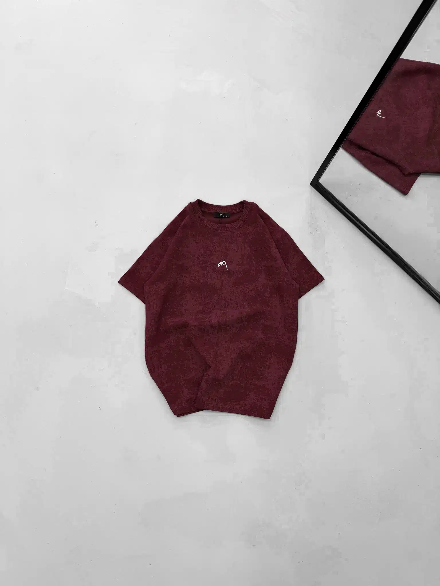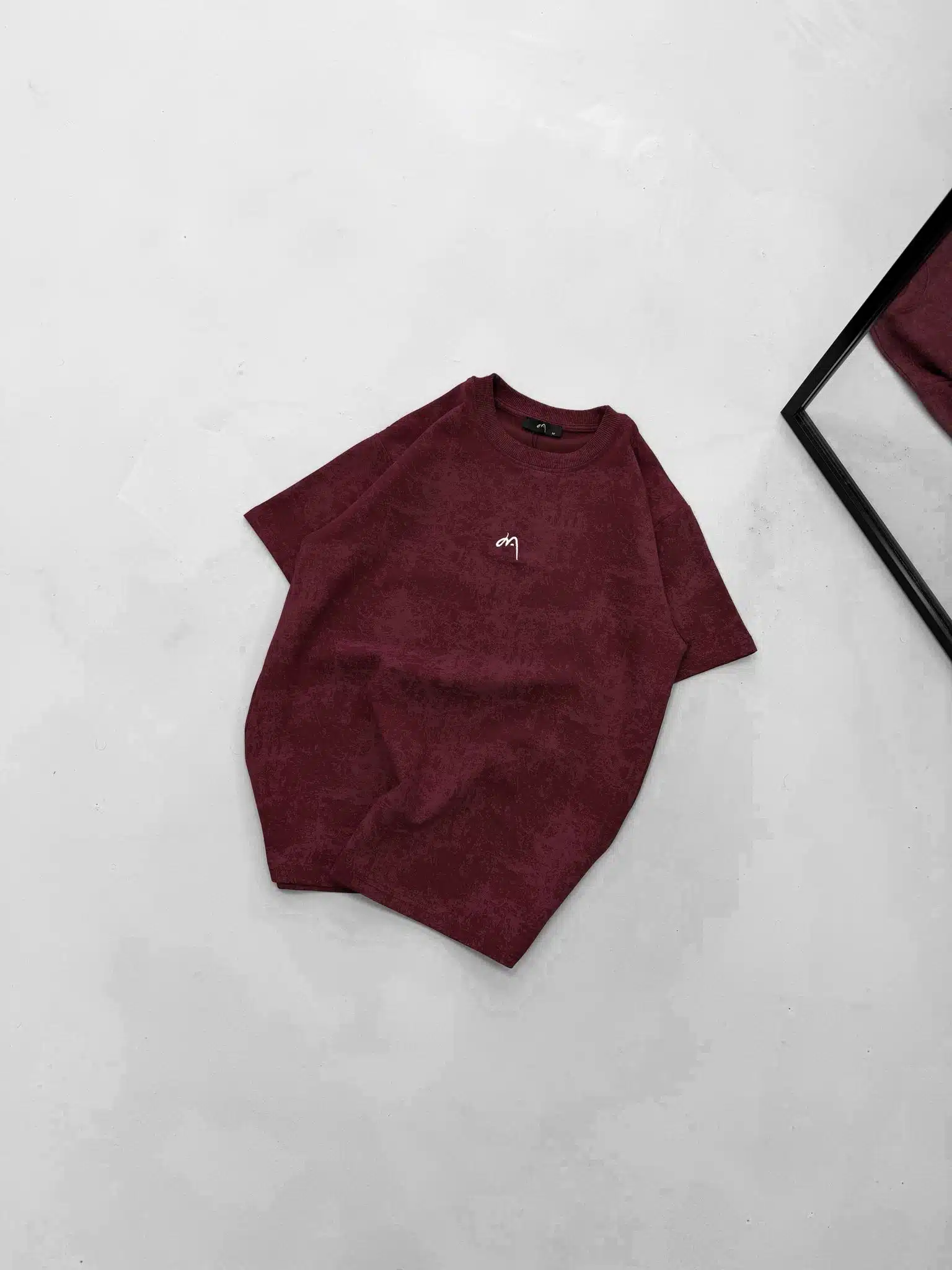 M Premium İmzalı Yıkamalı Bisiklet Yaka Tshirt-Bordo