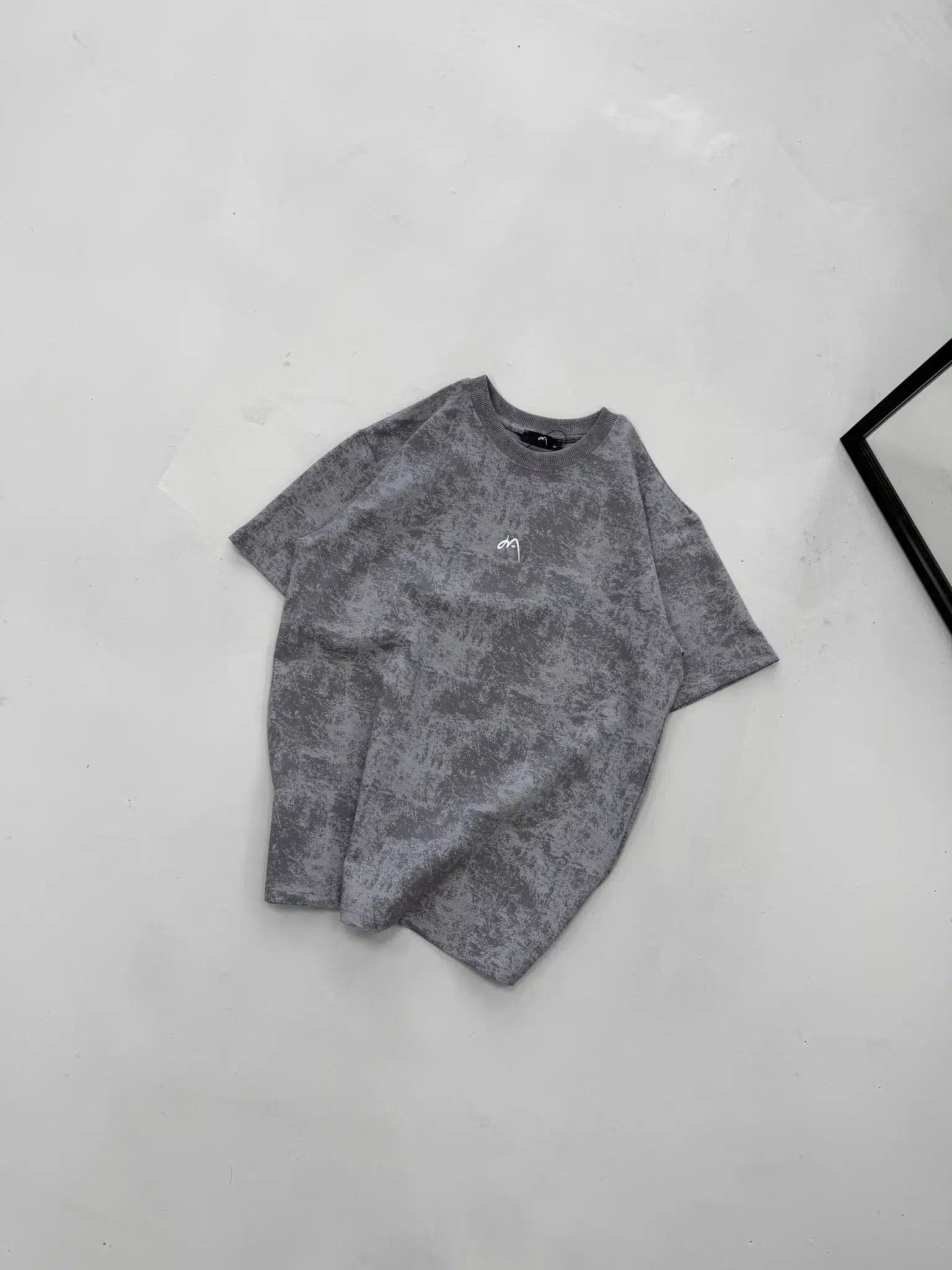M Premium İmzalı Yıkamalı Bisiklet Yaka Tshirt-Gri