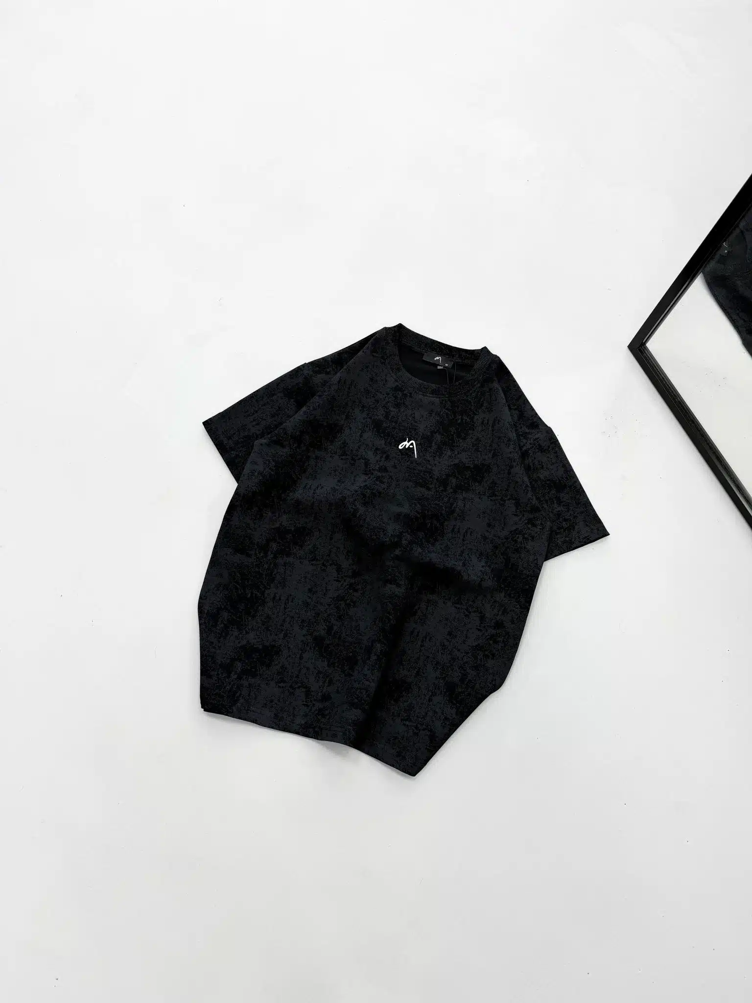 M Premium İmzalı Yıkamalı Bisiklet Yaka Tshirt-Siyah