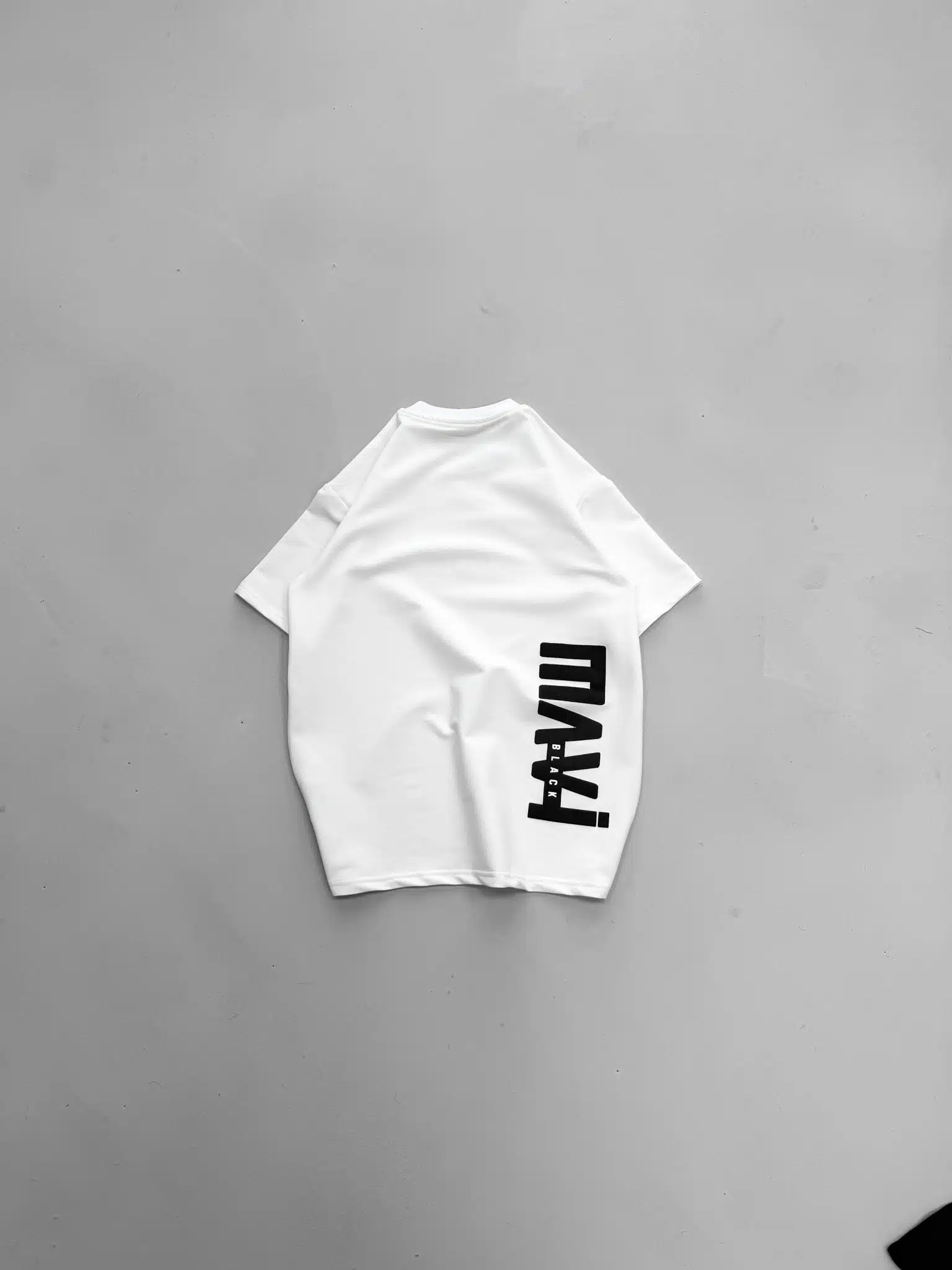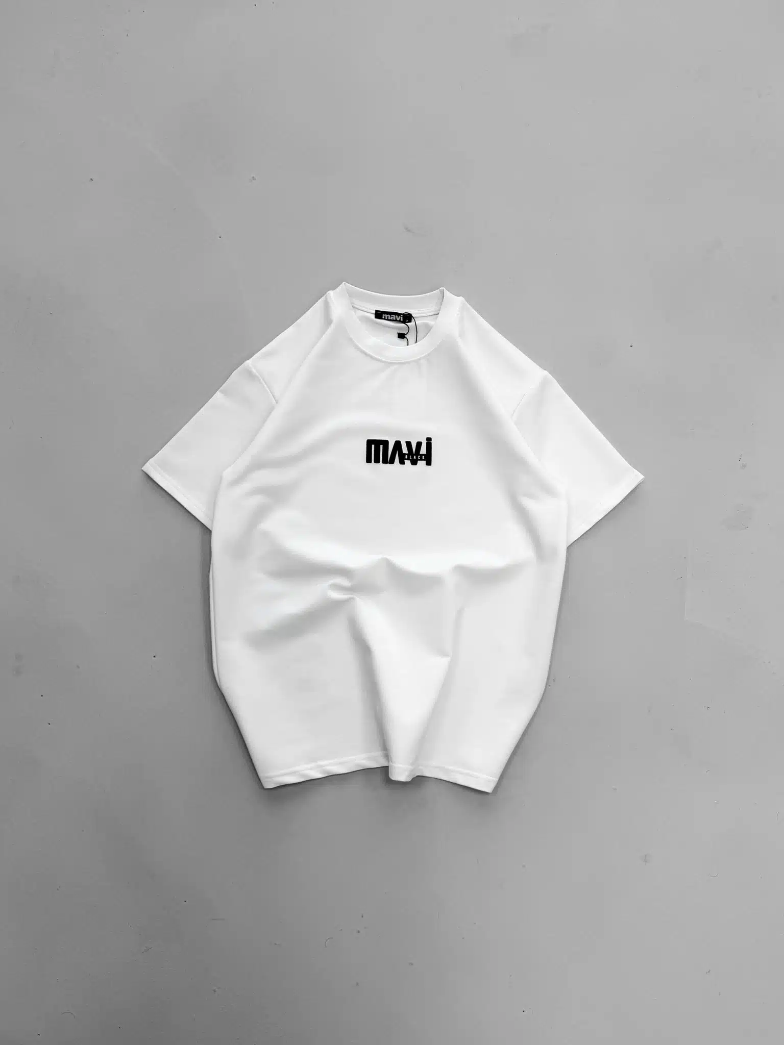M Premium Sırt Kabartma Baskılı Bisiklet Yaka Tshirt-Beyaz