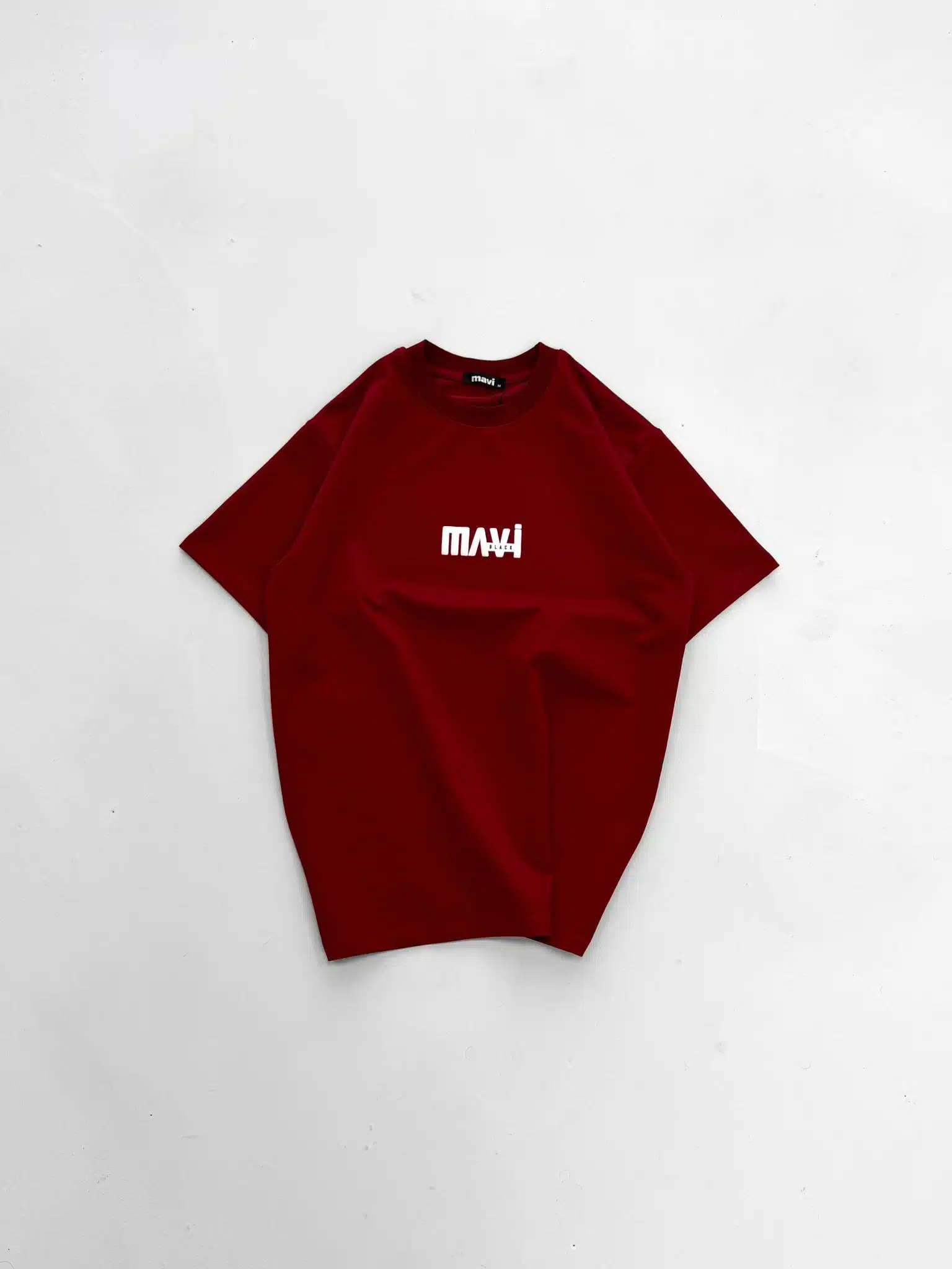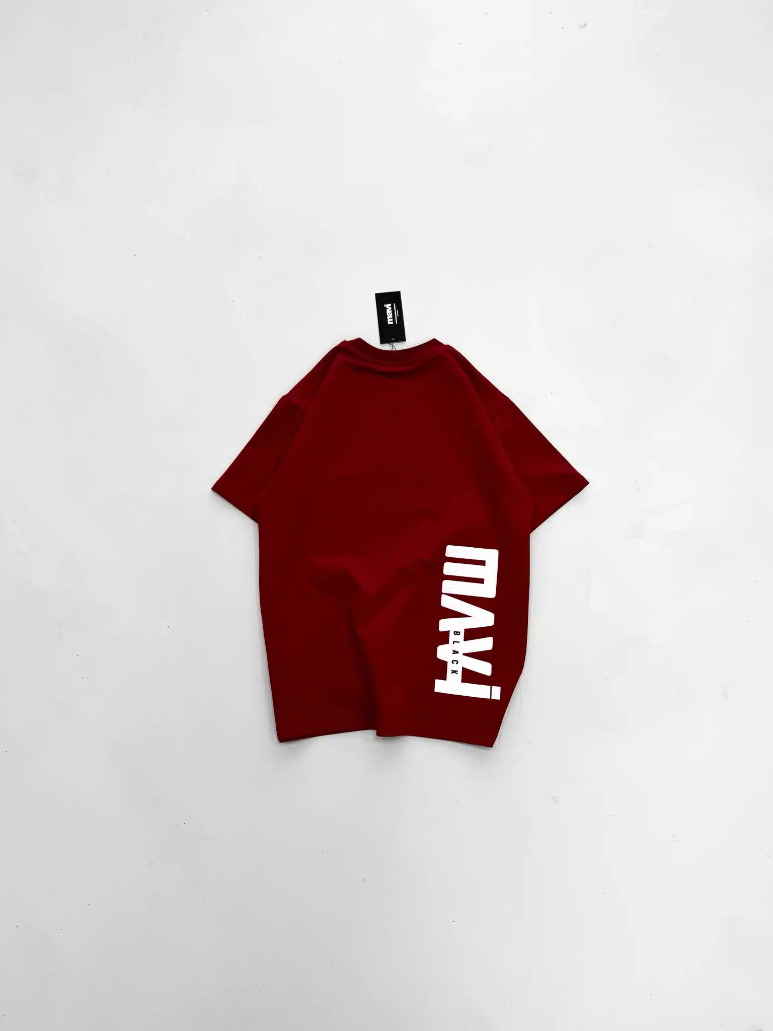 M Premium Sırt Kabartma Baskılı Bisiklet Yaka Tshirt-Bordo