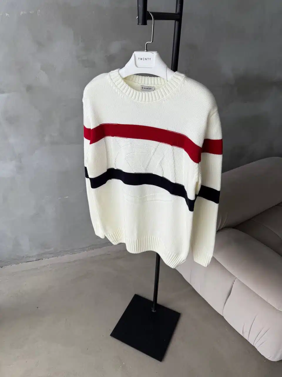 MC İşlemeli Premium Örgü Triko Kazak – Beyaz