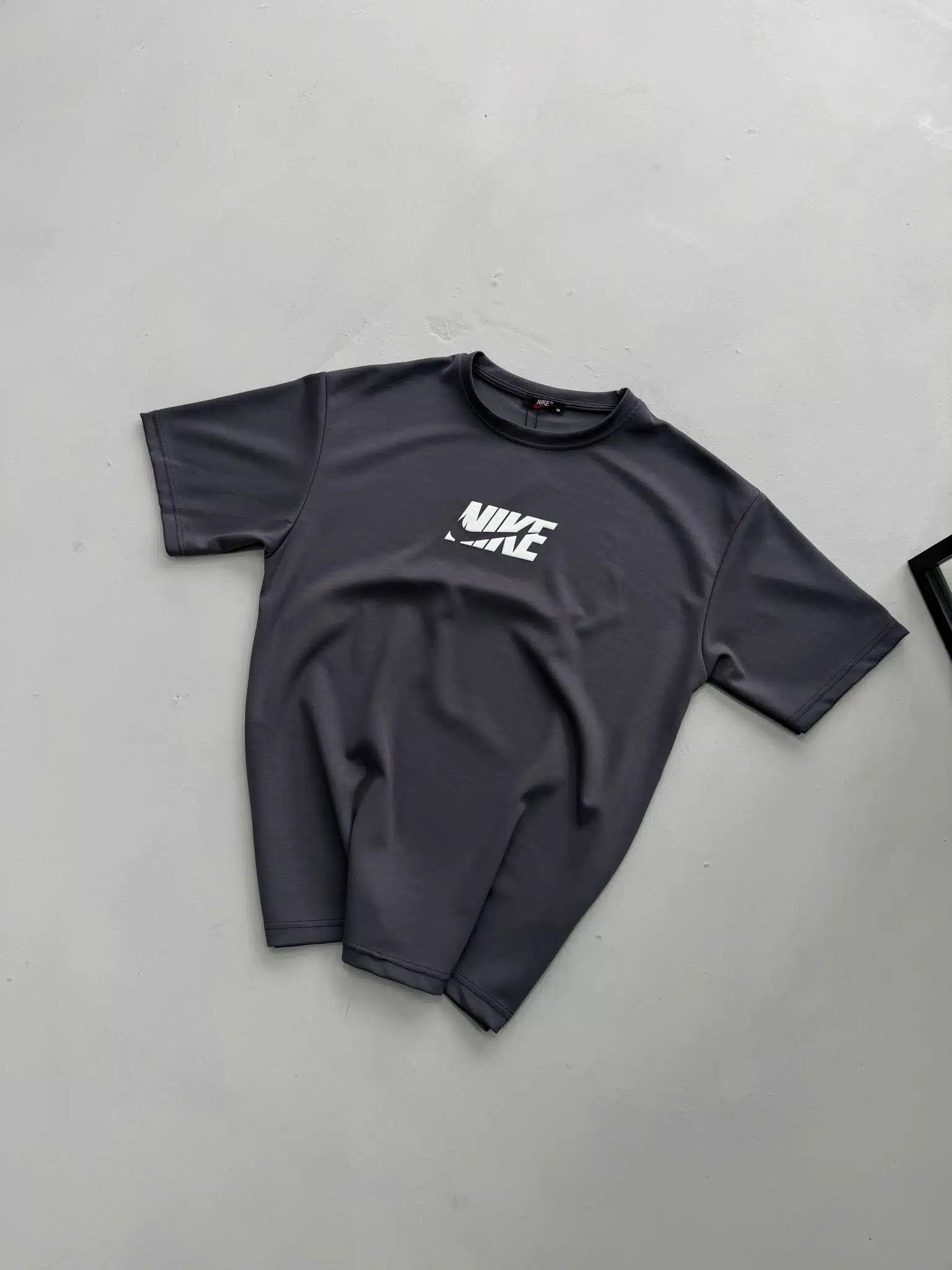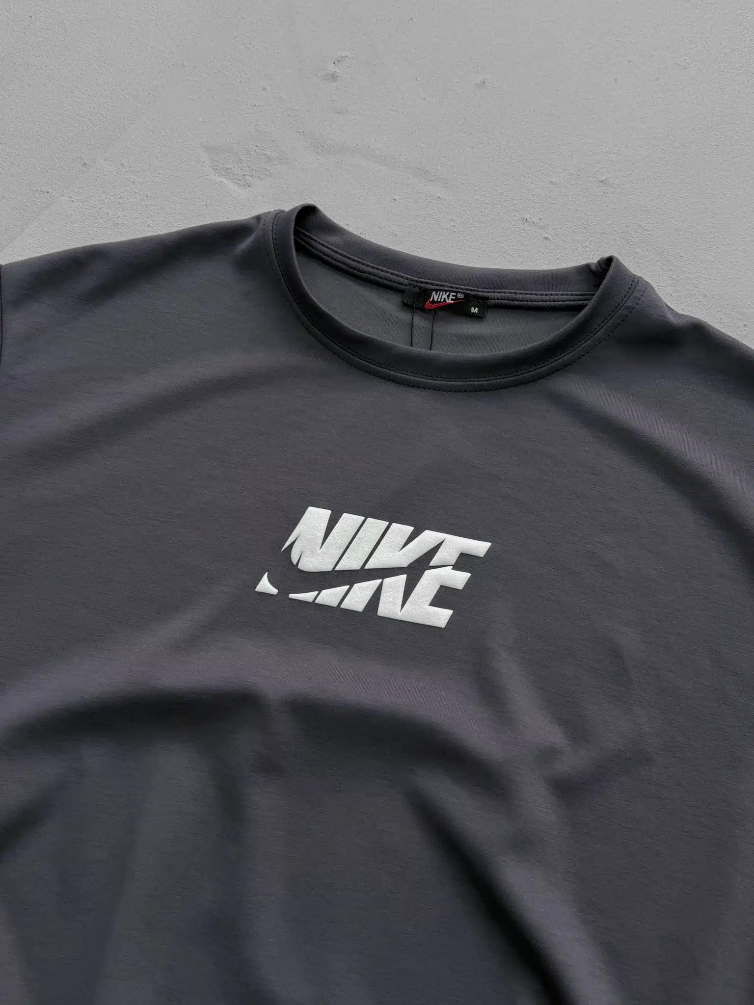 NK Kabartma Baskılı Bisiklet Yaka Tshirt – Füme