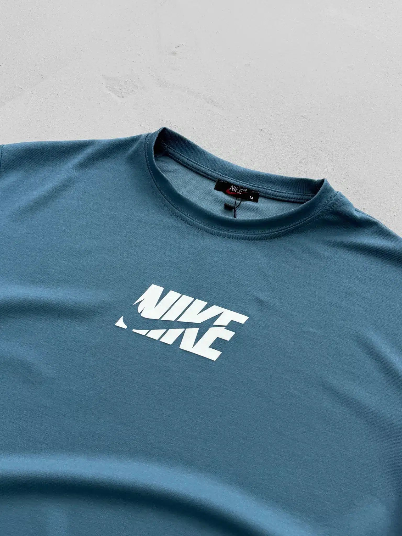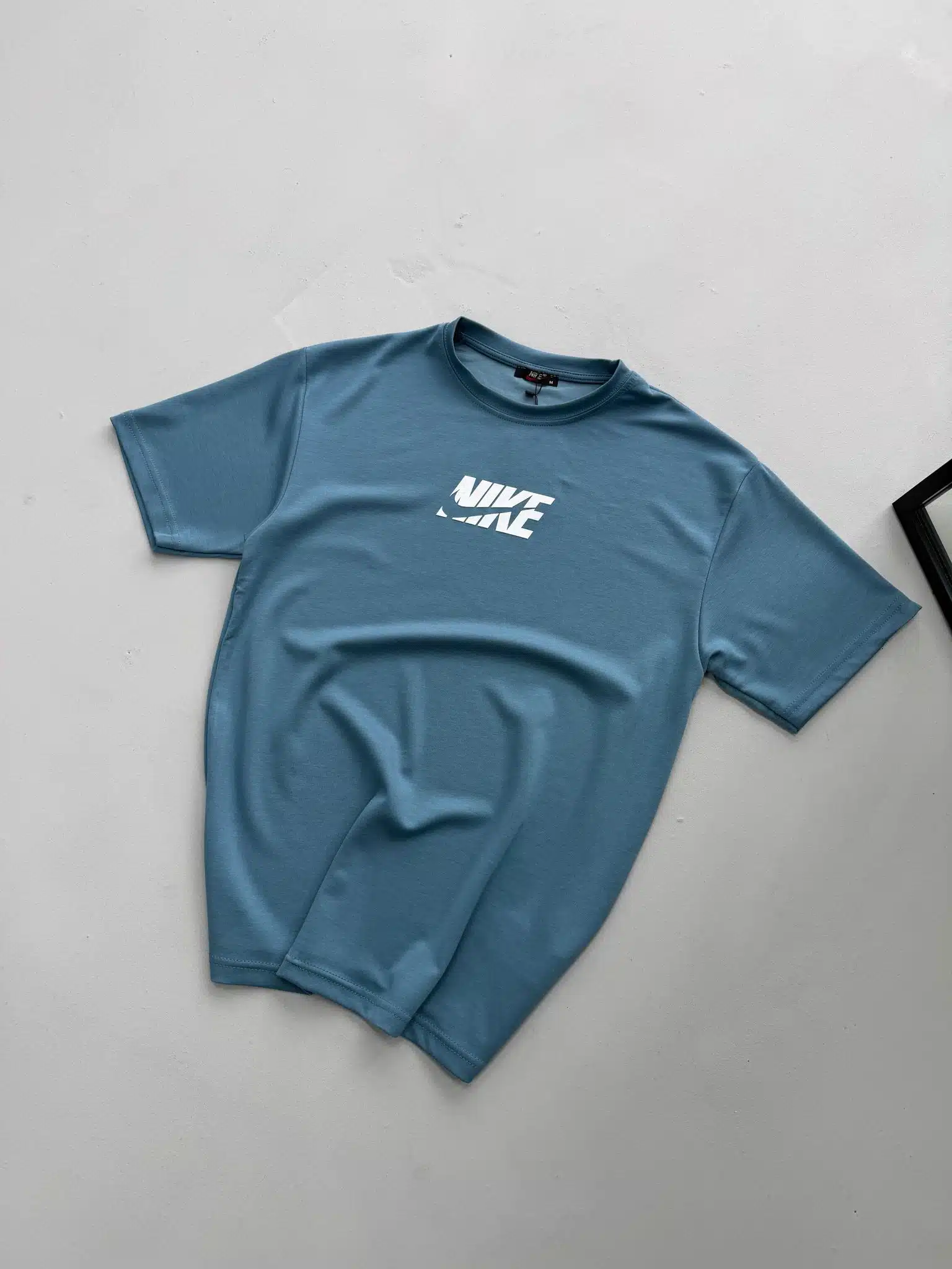 NK Kabartma Baskılı Bisiklet Yaka Tshirt – Mavi