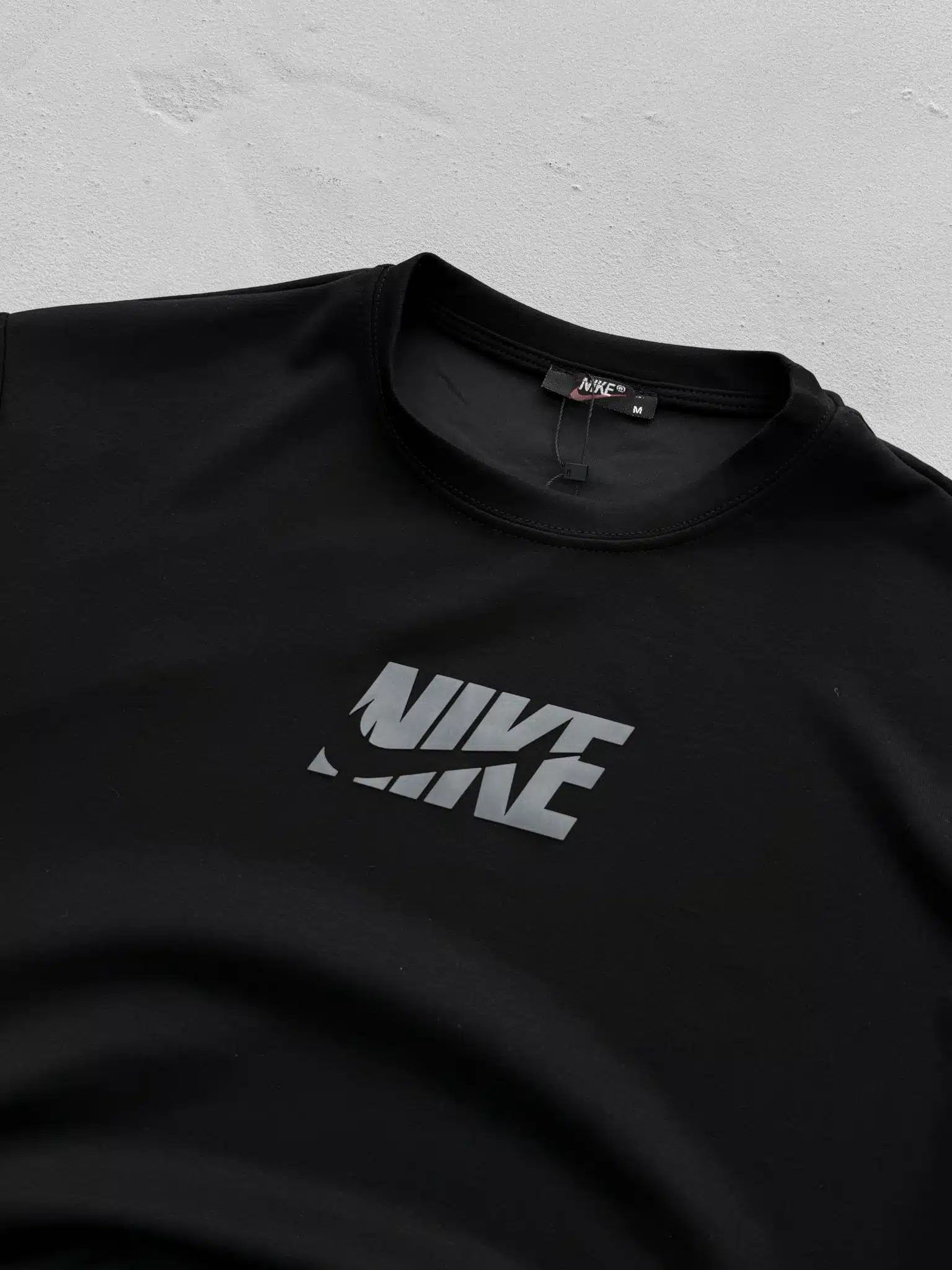 NK Kabartma Baskılı Bisiklet Yaka Tshirt – Siyah