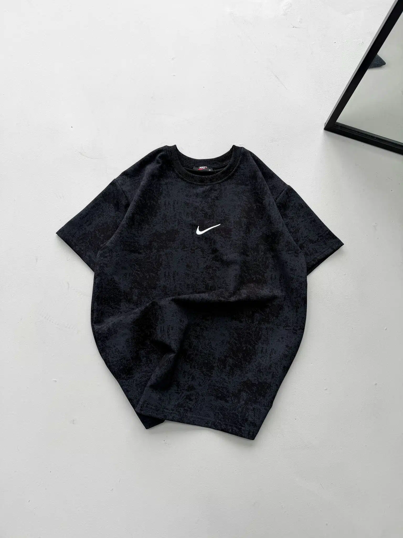 NK Nakış Detaylı Yıkamalı Tshirt-Siyah