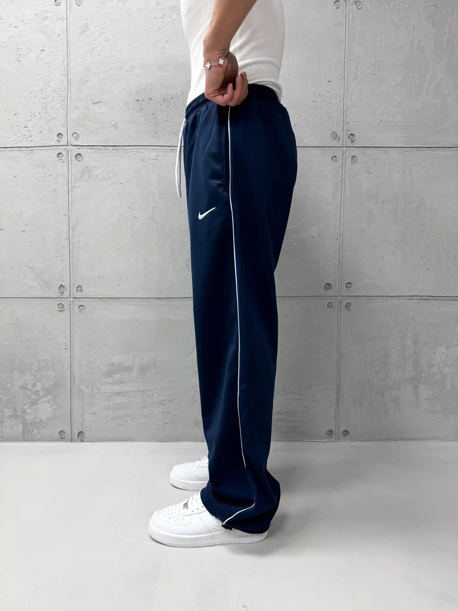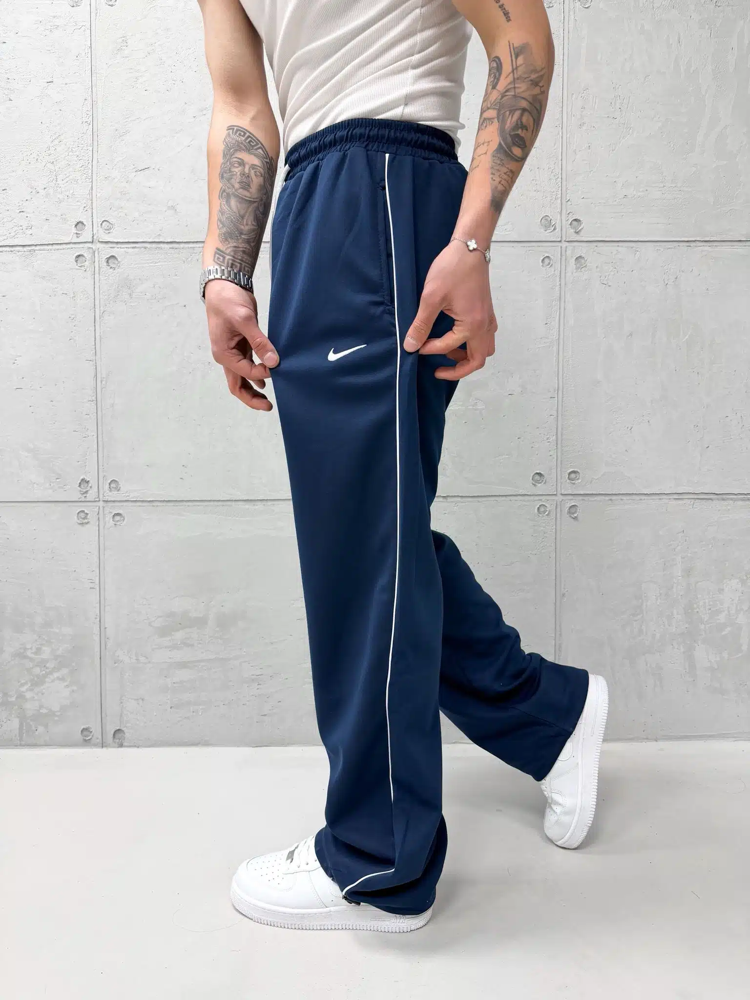 ‘NK’ Nakışlı Şeritli Lastikli Stoper Paça Baggy Eşofman – İndigo