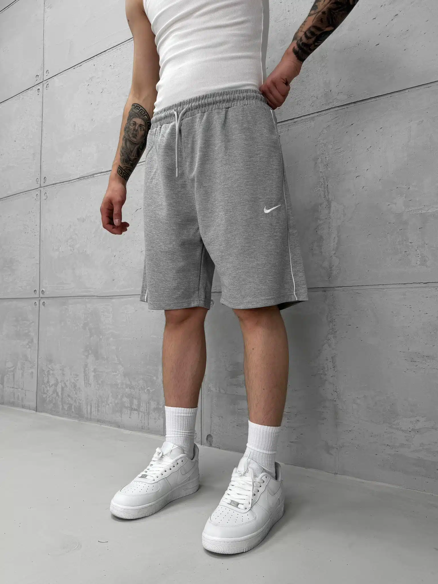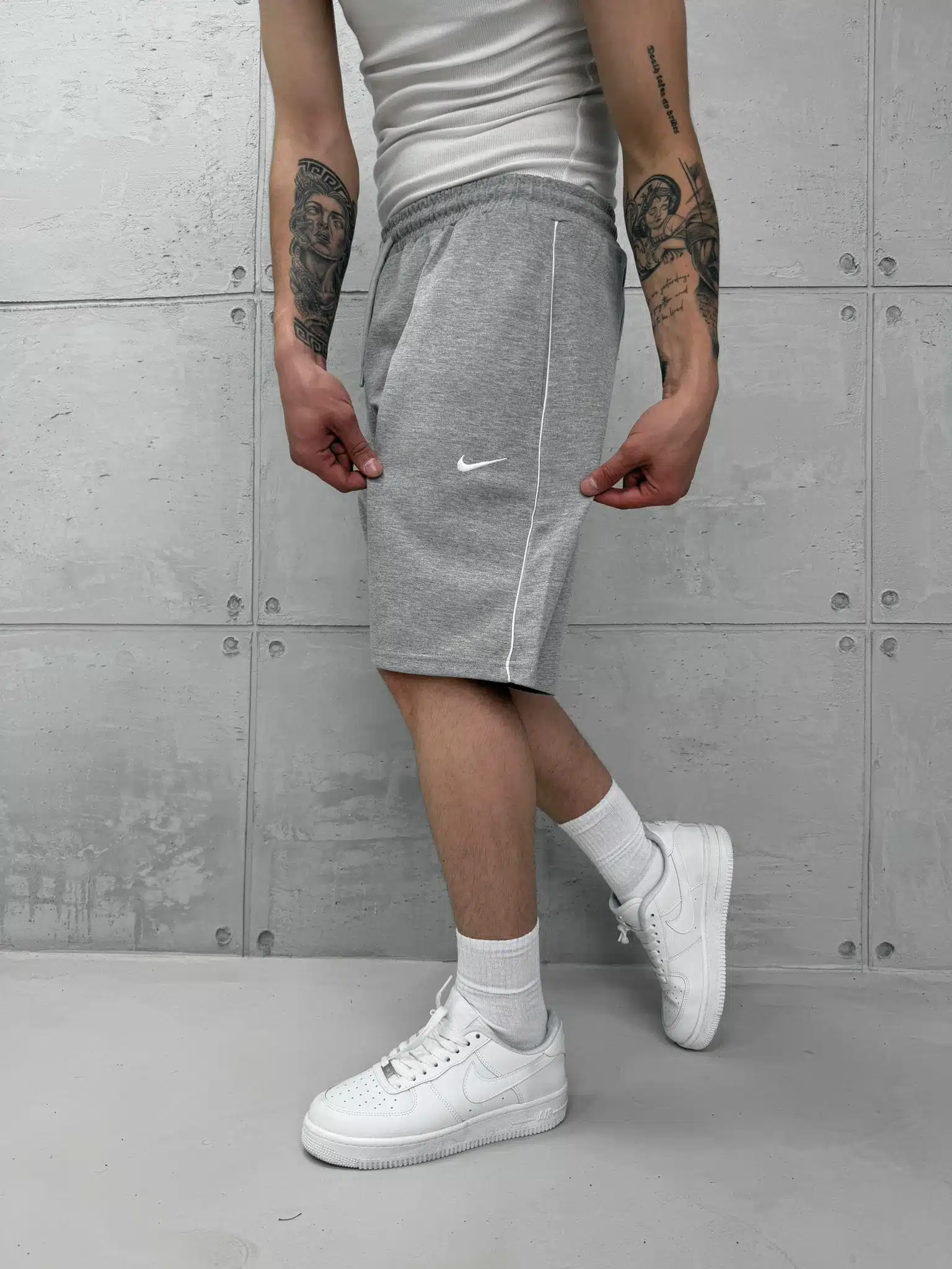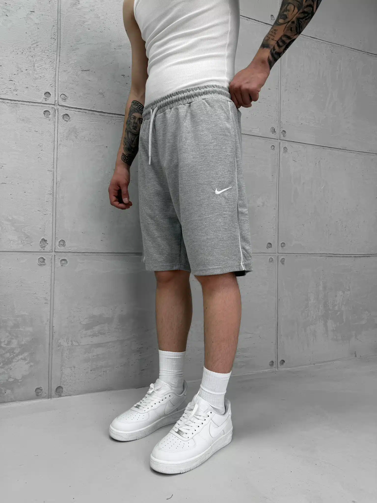 NK Nakışlı Şeritli Oversize Şort – Gri