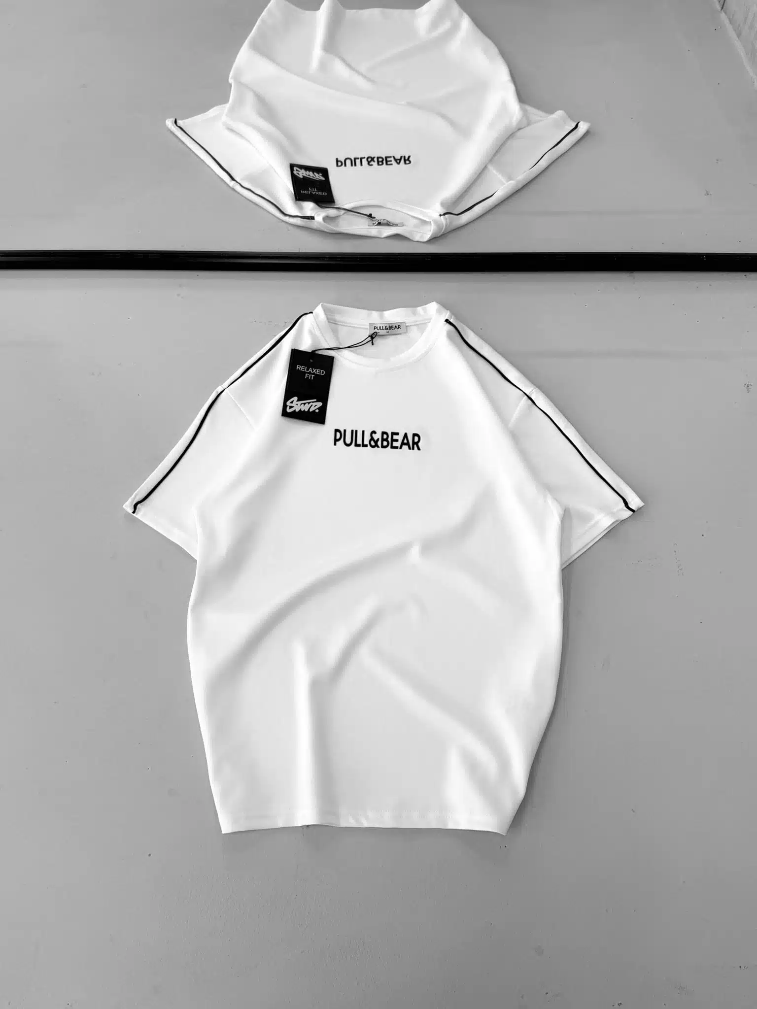 Anasayfa » Mağaza » PB Enjeksiyon Baskılı Şerit Detaylı Bisiklet Yaka Tshirt – Beyaz