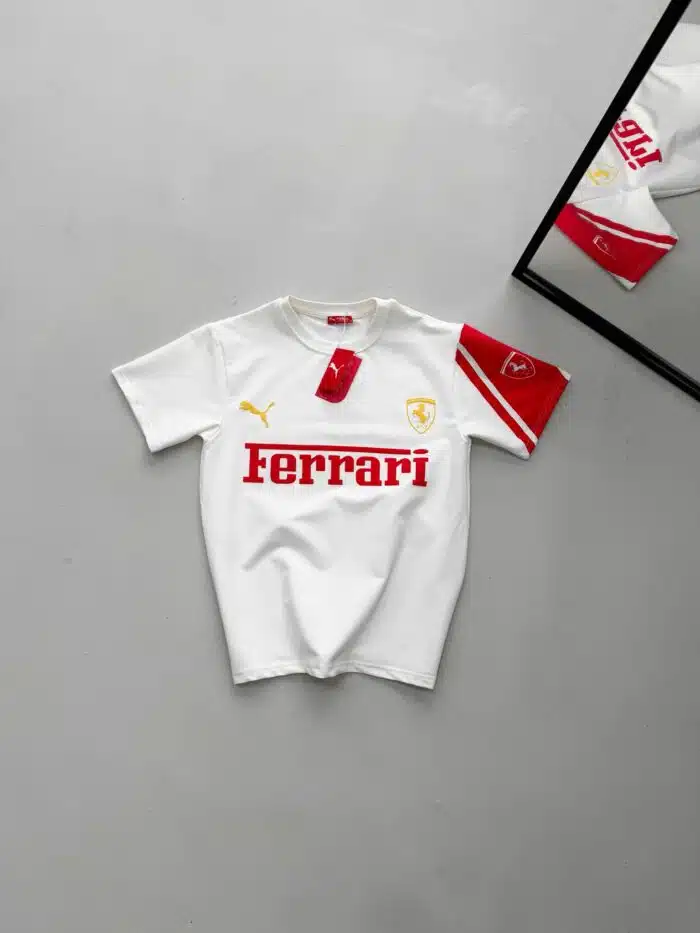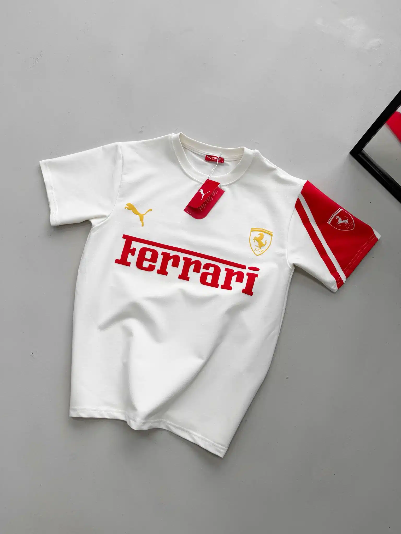 PM Kabartma Baskılı Bisiklet Yaka Tshirt-Beyaz