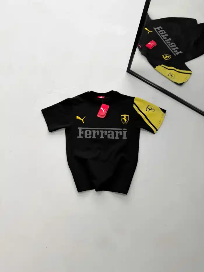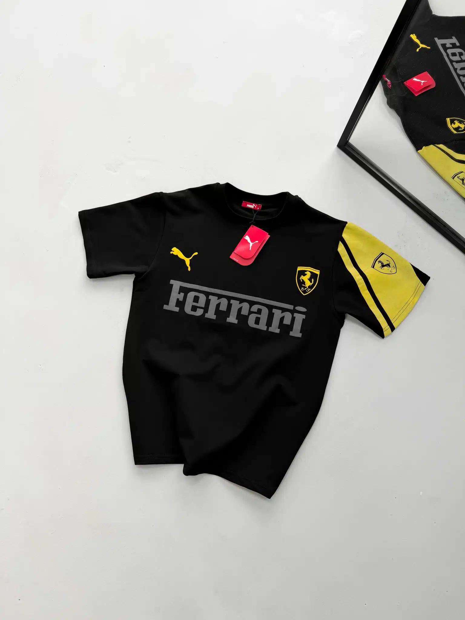 PM Kabartma Baskılı Bisiklet Yaka Tshirt-Siyah