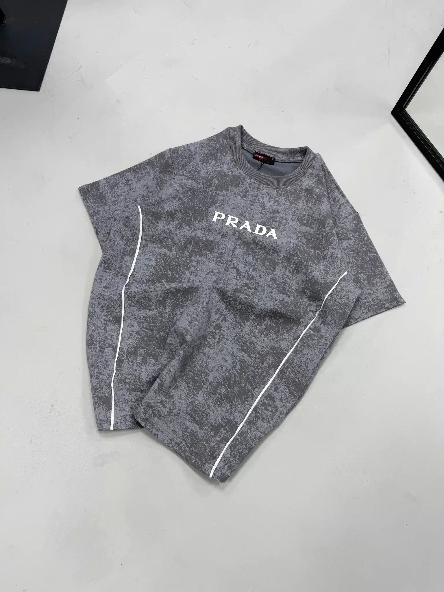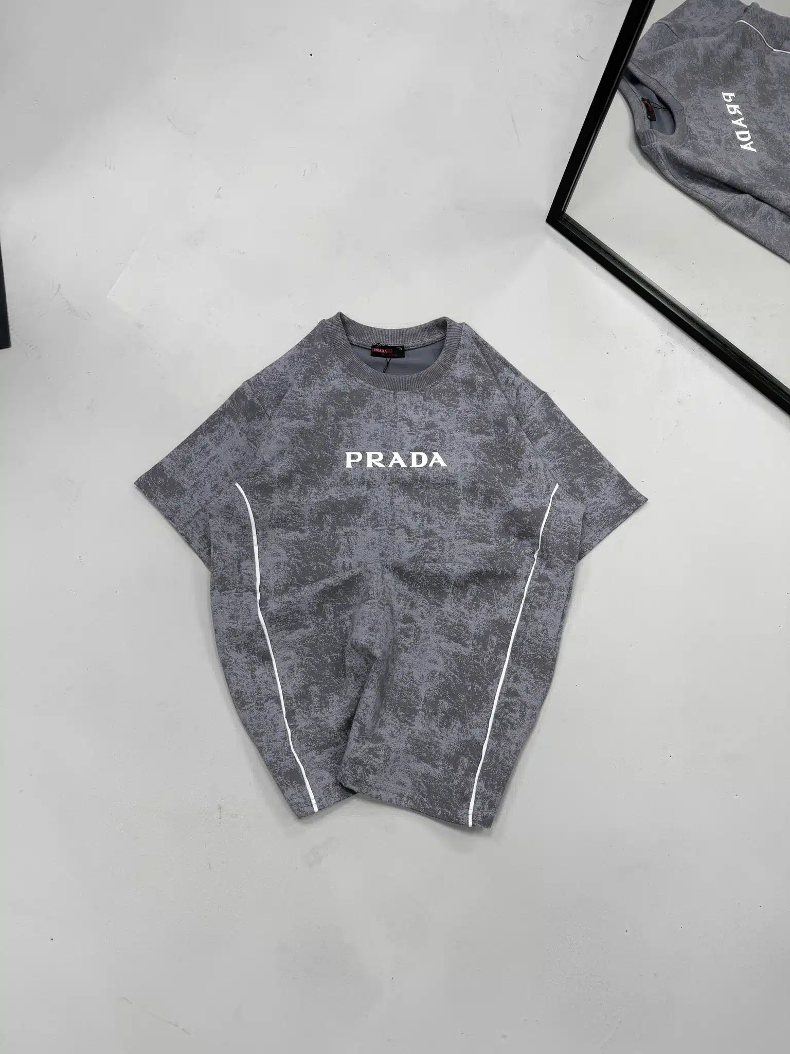 PRD Çift Şeritli Yıkamalı Bisiklet Yaka Tshirt – Gri