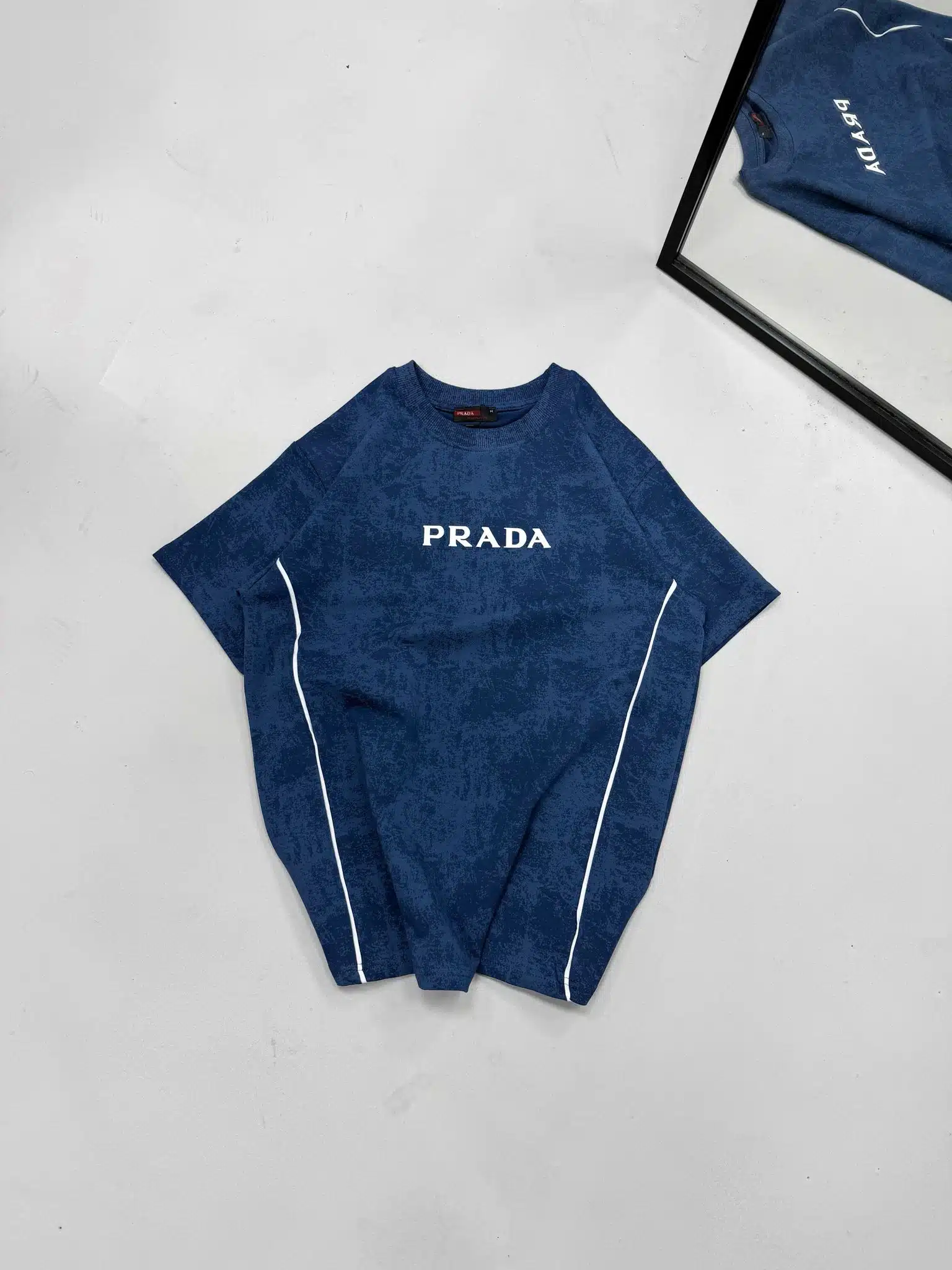 PRD Çift Şeritli Yıkamalı Bisiklet Yaka Tshirt – İndigo