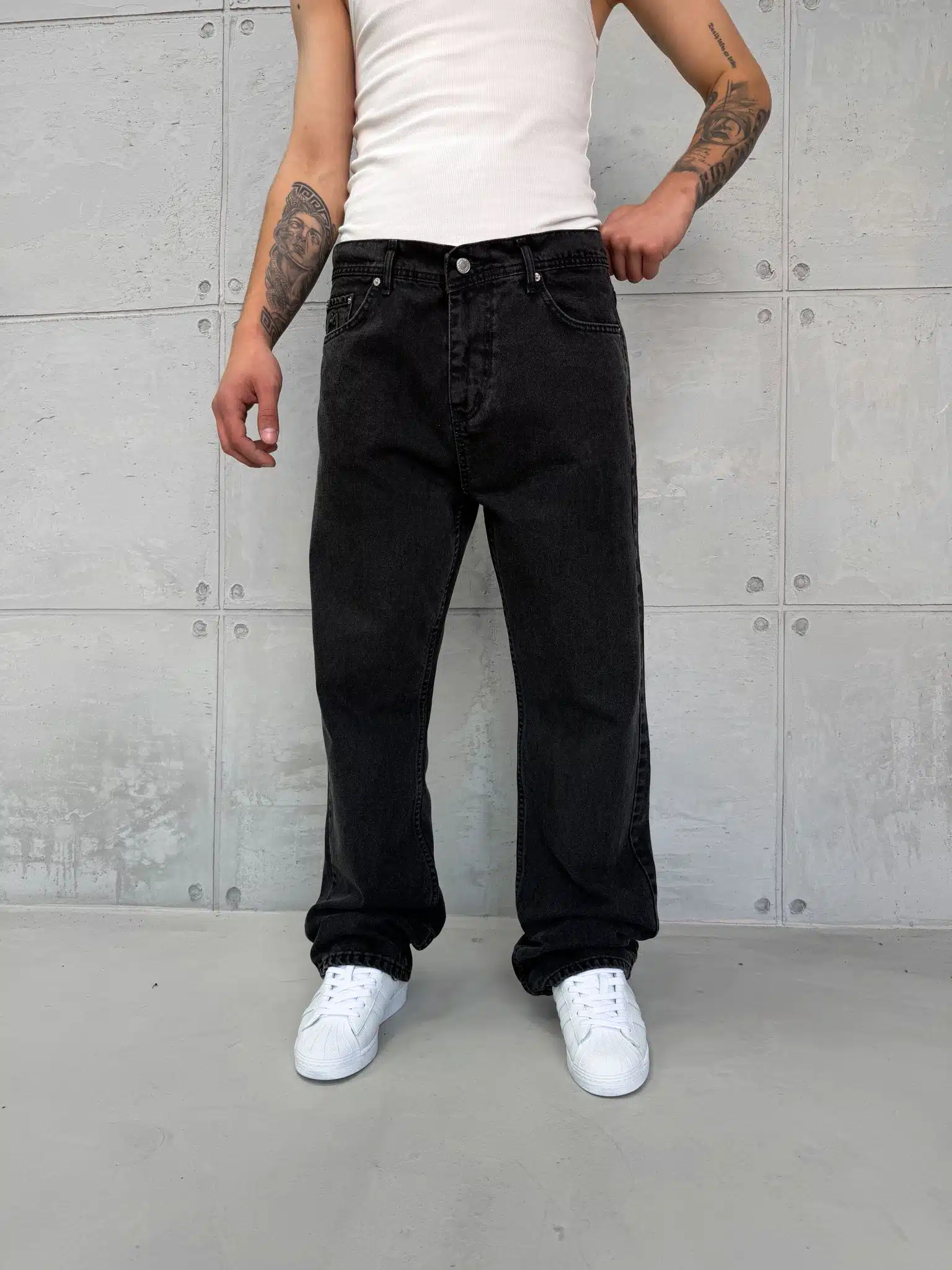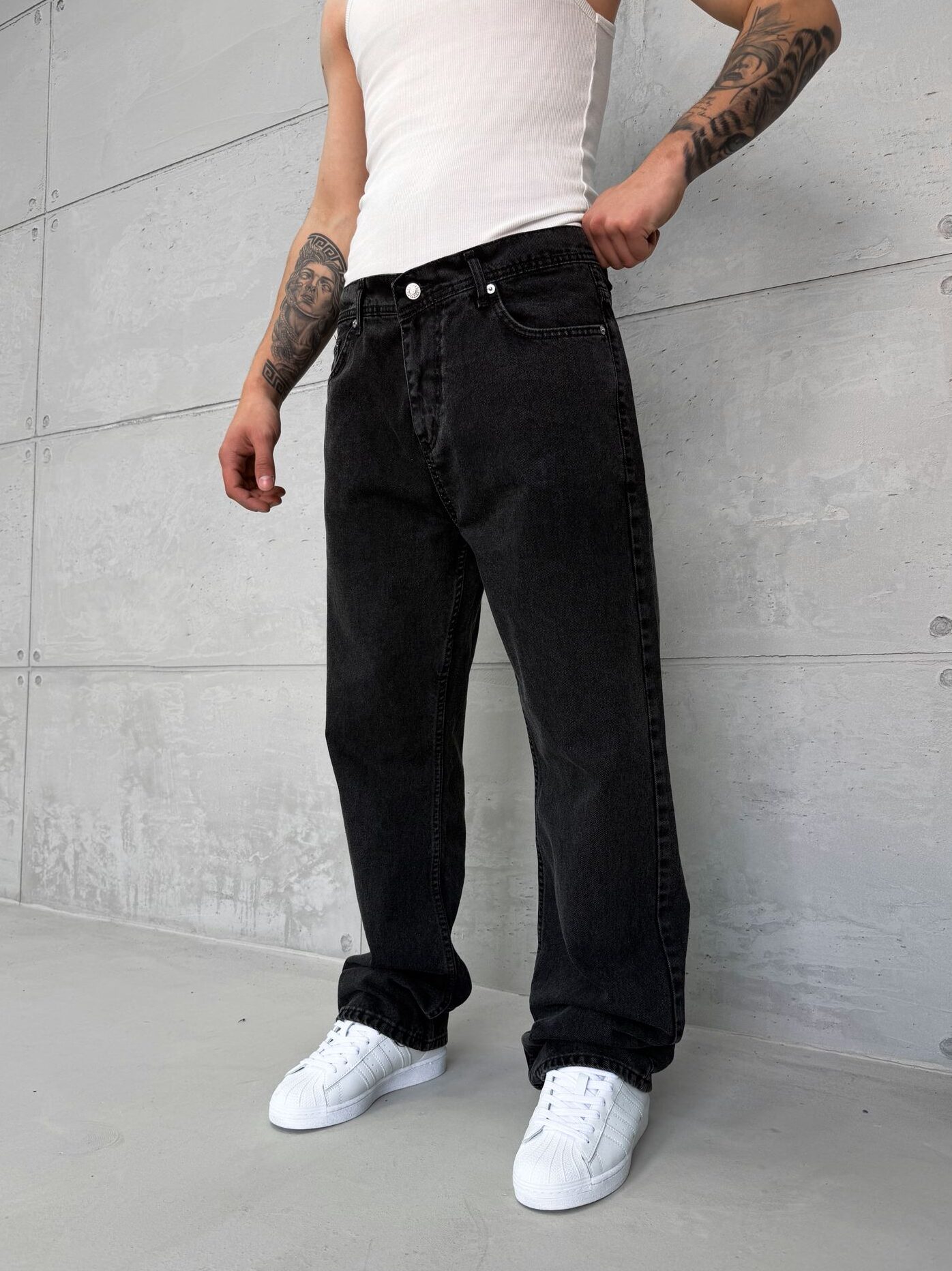 Premium Baggy Pantolon - Taşlamalı Siyah