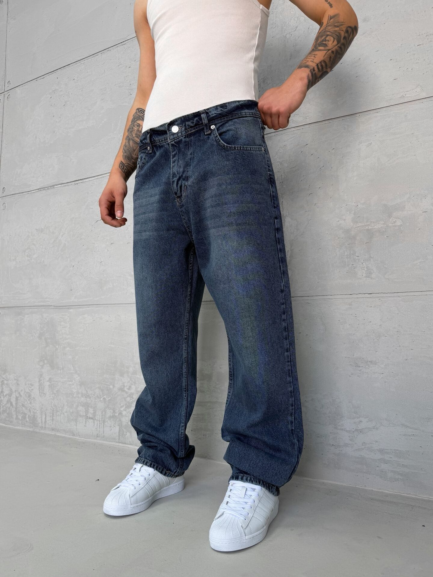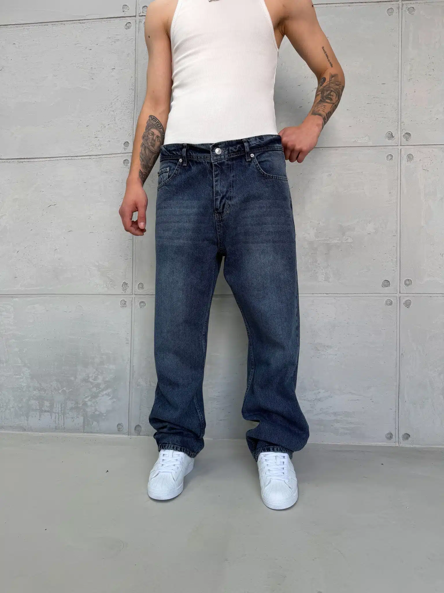 Premium Baggy Pantolon – Taşlamalı İndigo