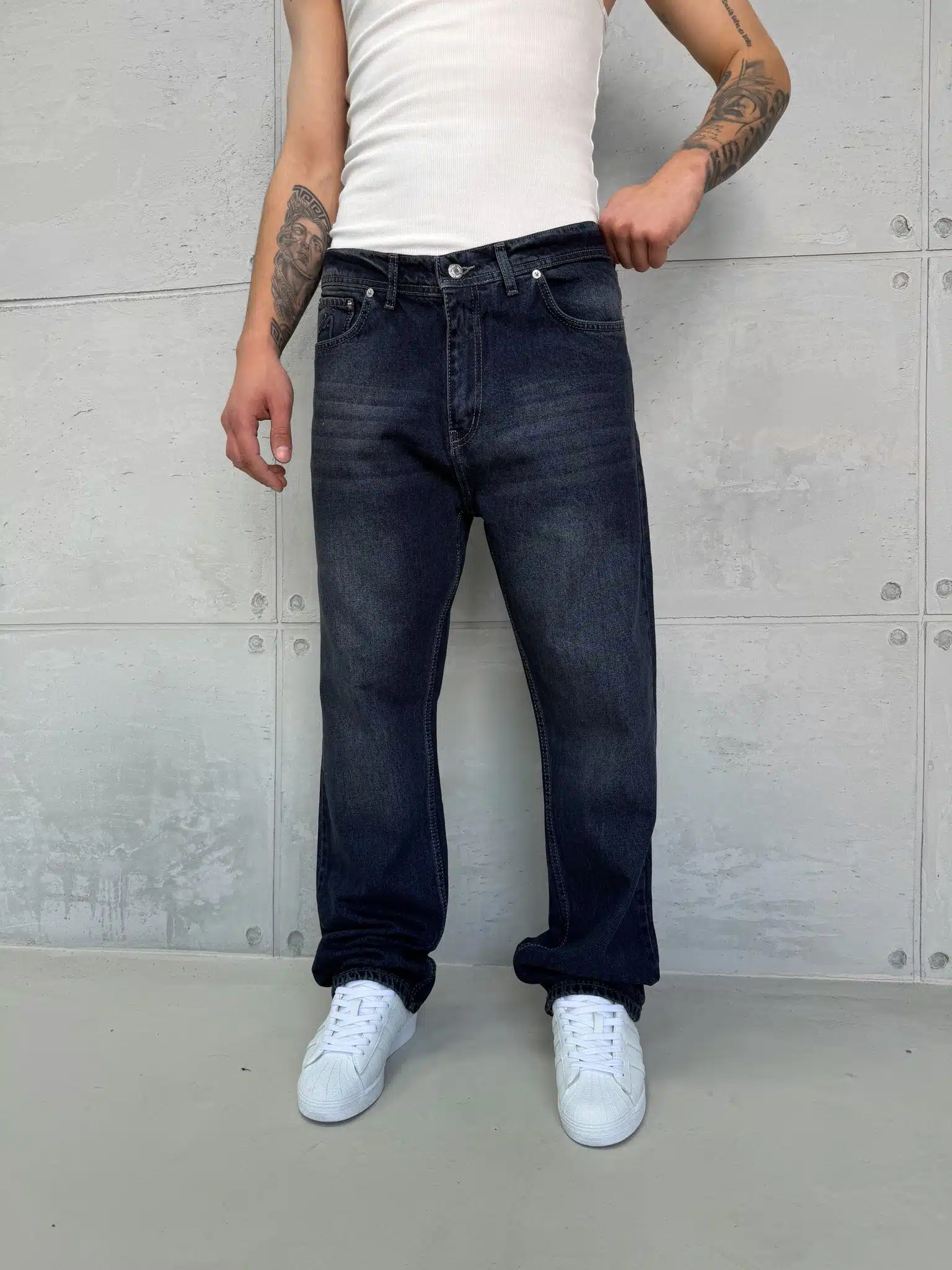 Premium Baggy Pantolon – Taşlamalı Siyah
