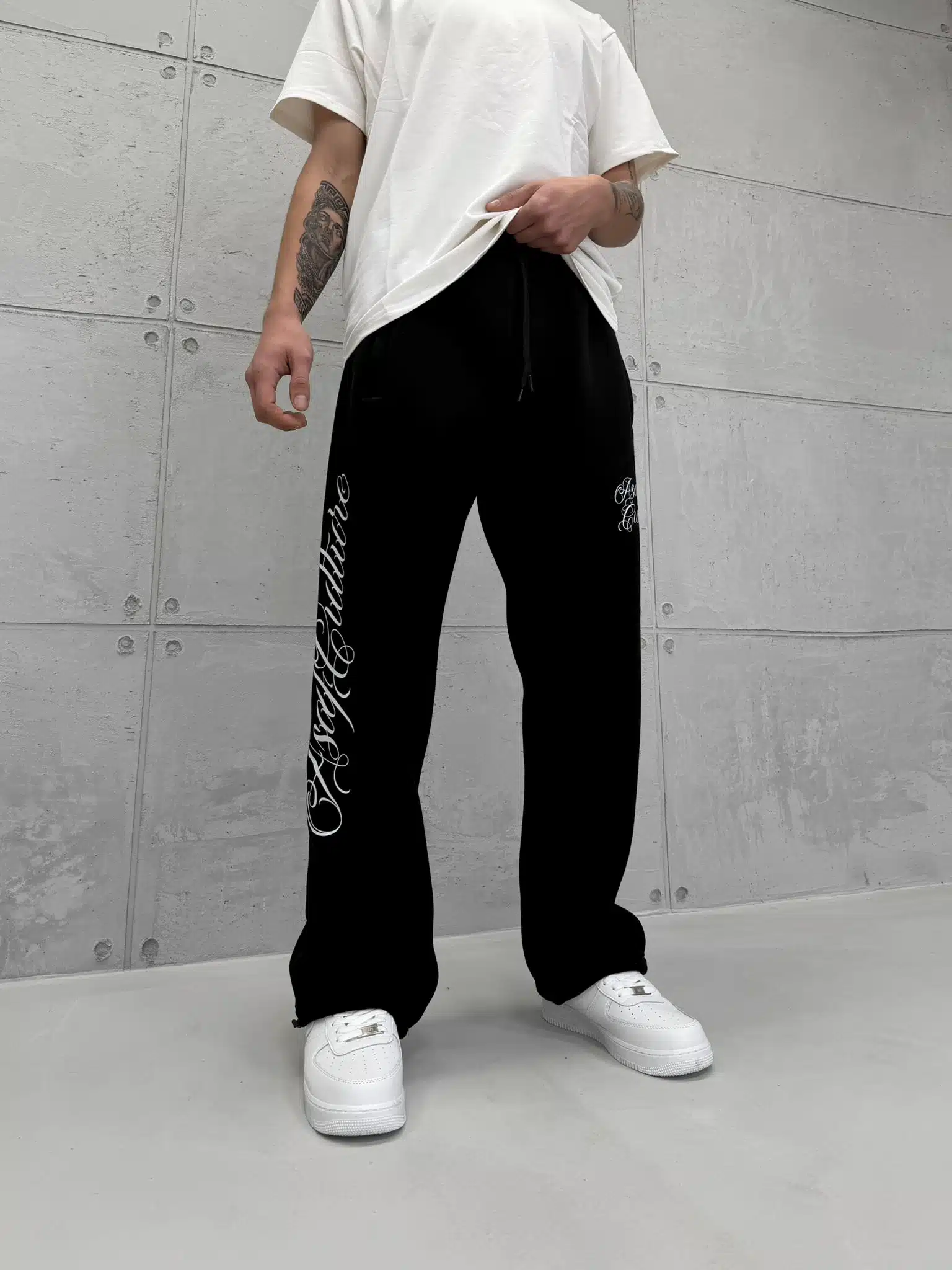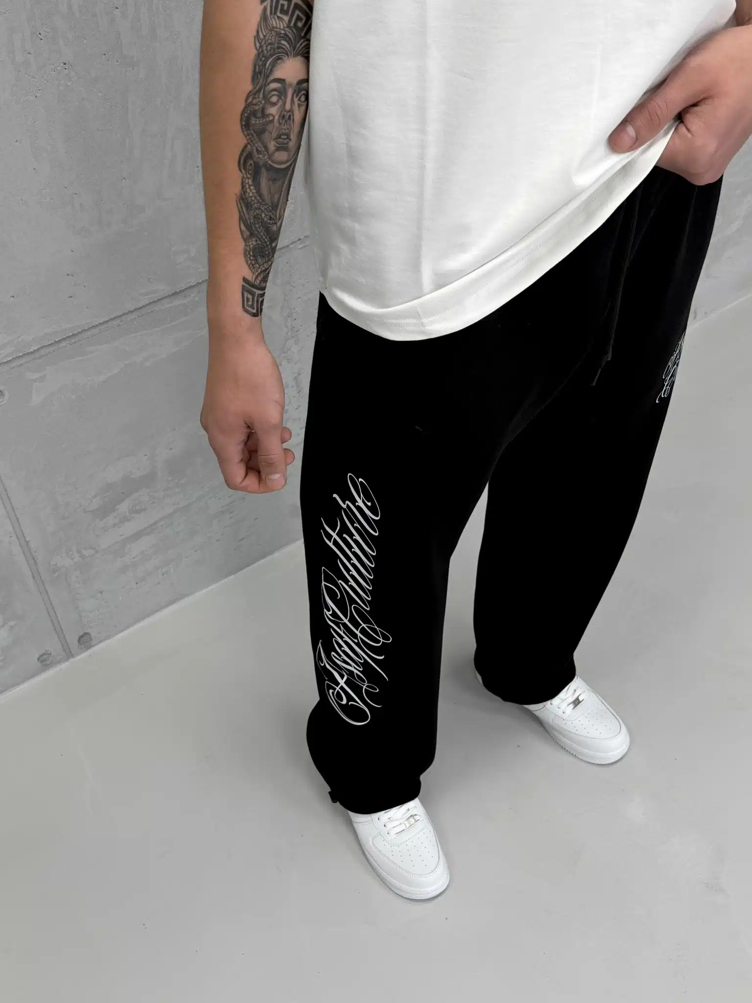 Premium GhettoBoys Büyük Baskılı Stoper Paça Baggy Eşofman – Siyah