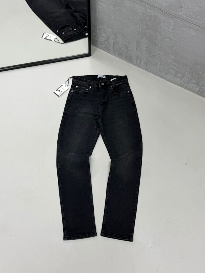 Premium İmzalı Regular Fit Pantolon – Taşlamalı Siyah