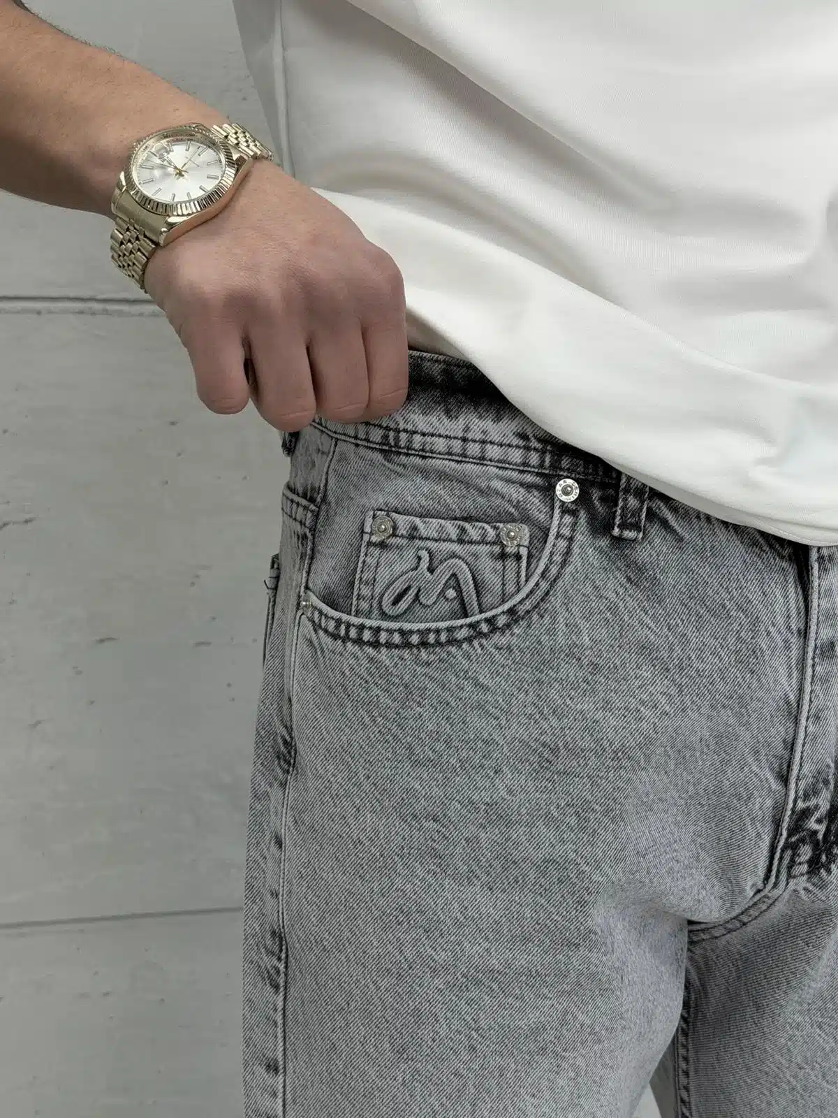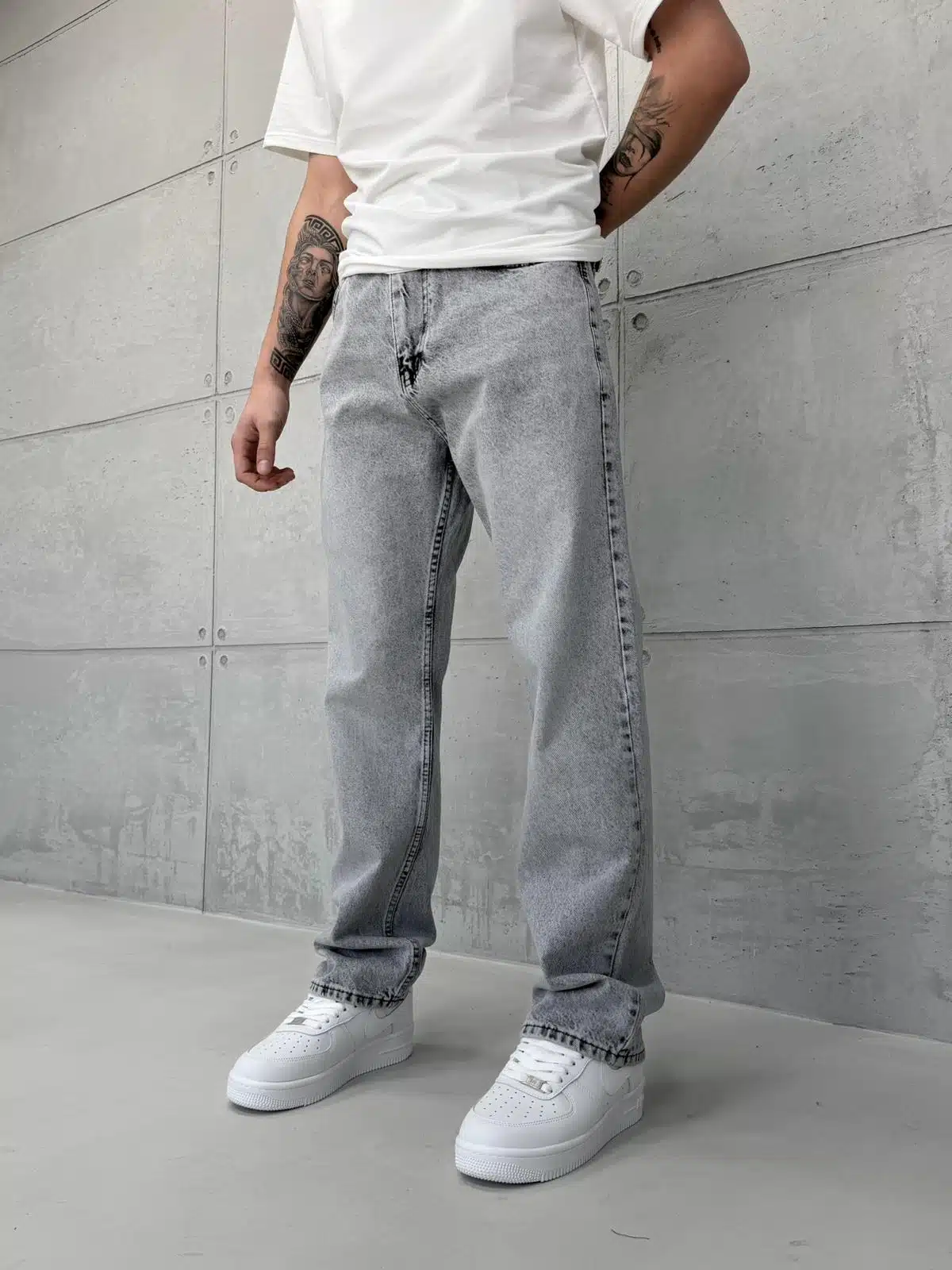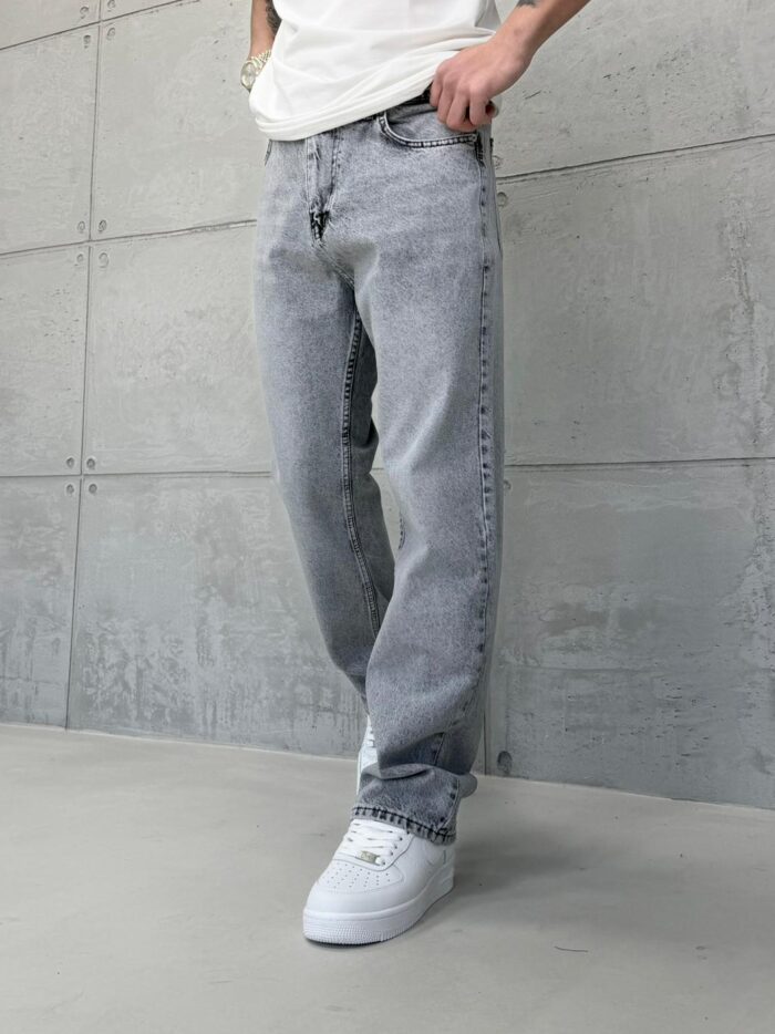 Premıum İmzalı Seri Baggy Jean – Taşlamalı Gri