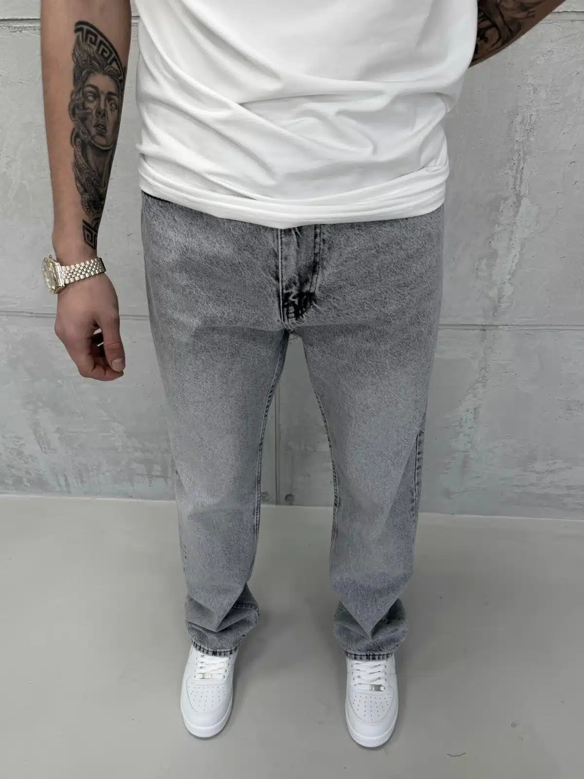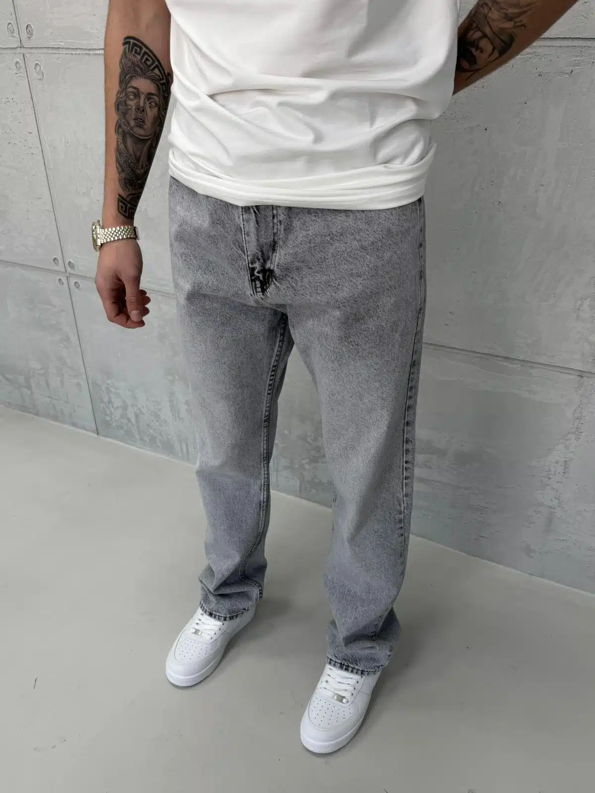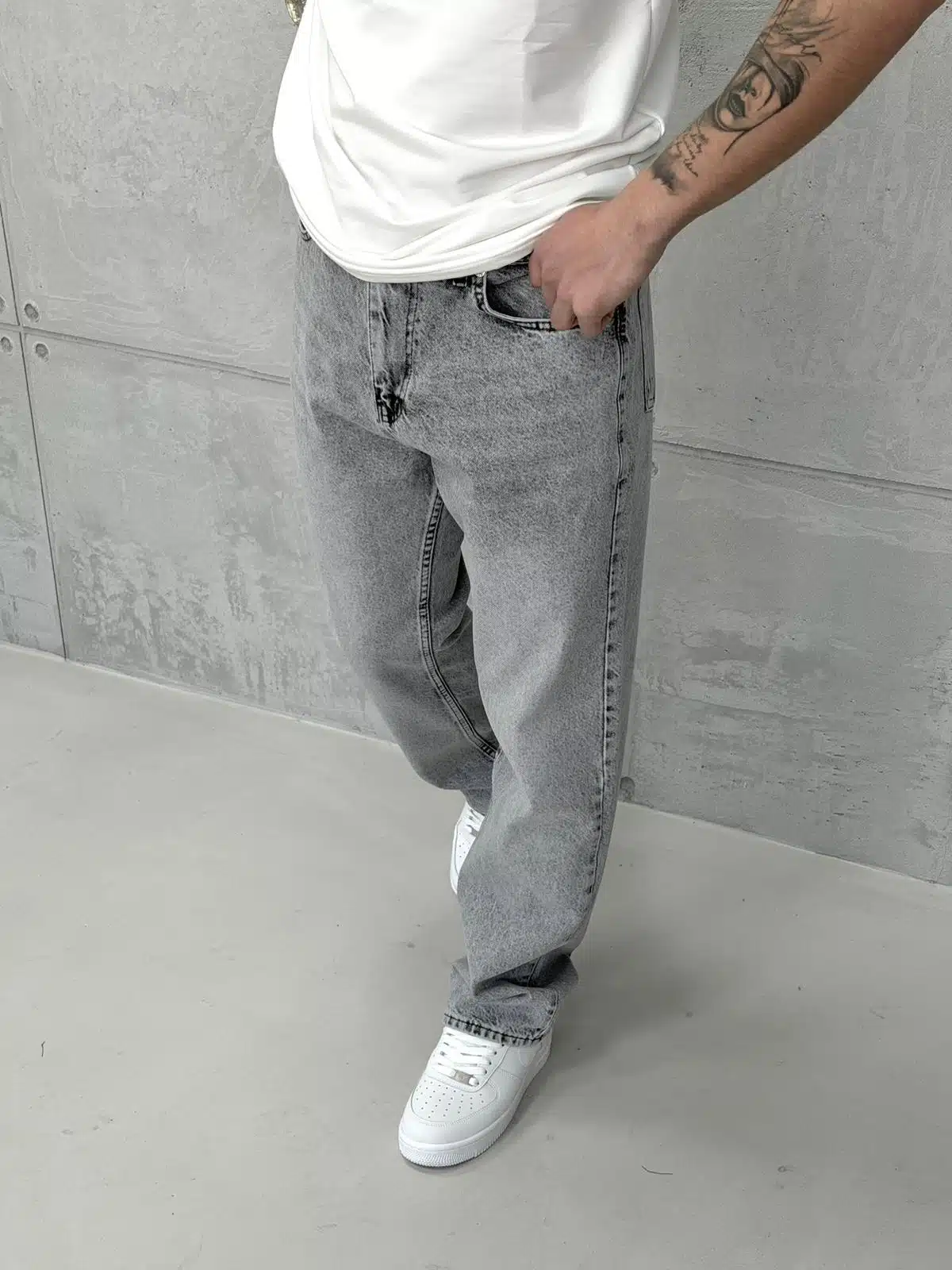 Premıum İmzalı Seri Baggy Jean – Taşlamalı Gri
