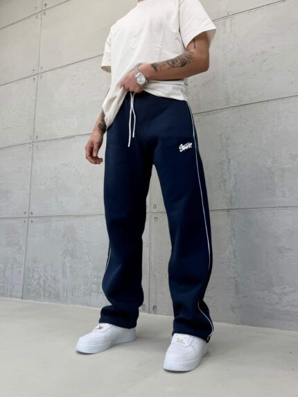 Premium İmzalı Seri Nakışlı Stoper Paça Baggy Eşofman – İndigo
