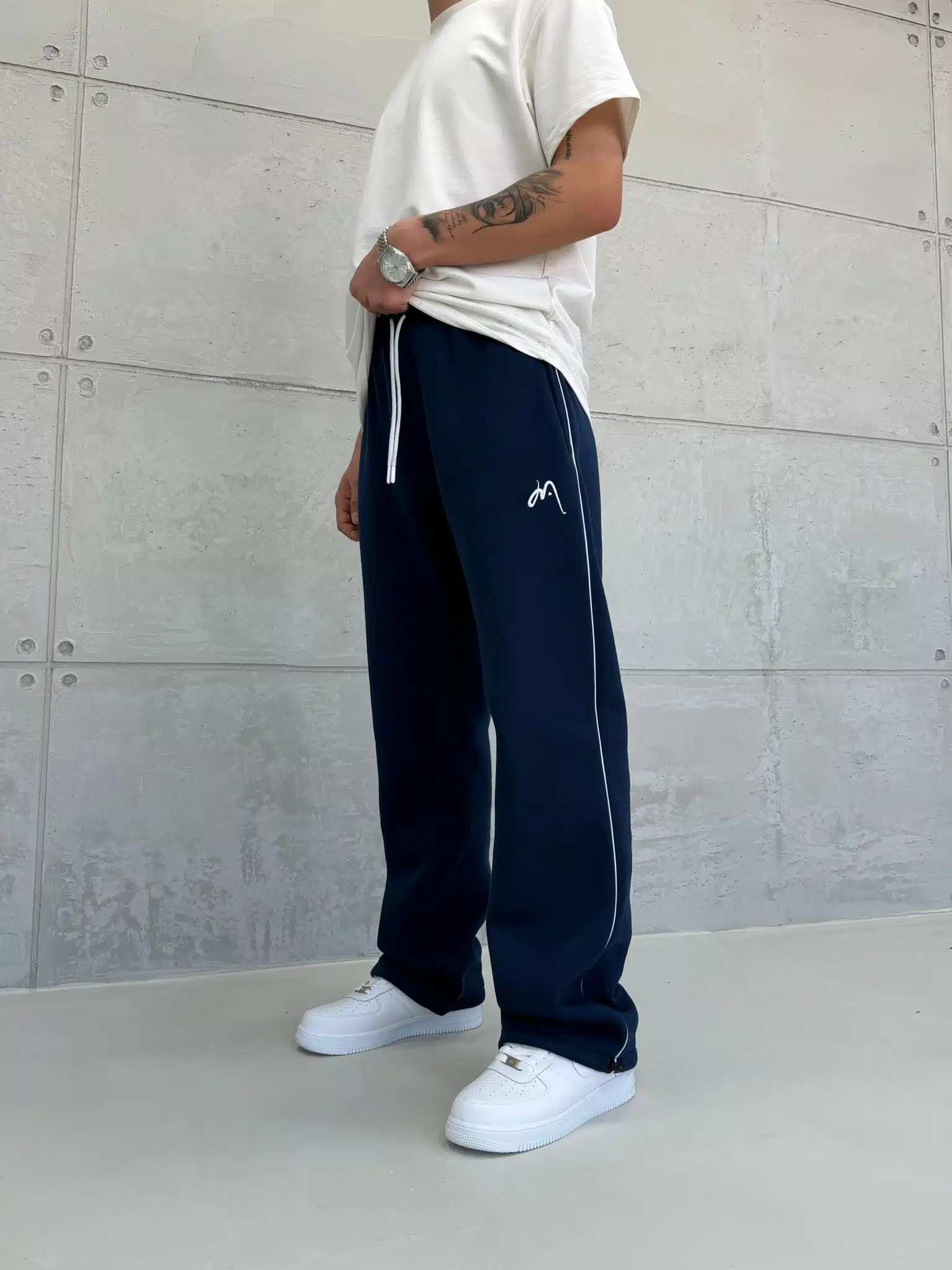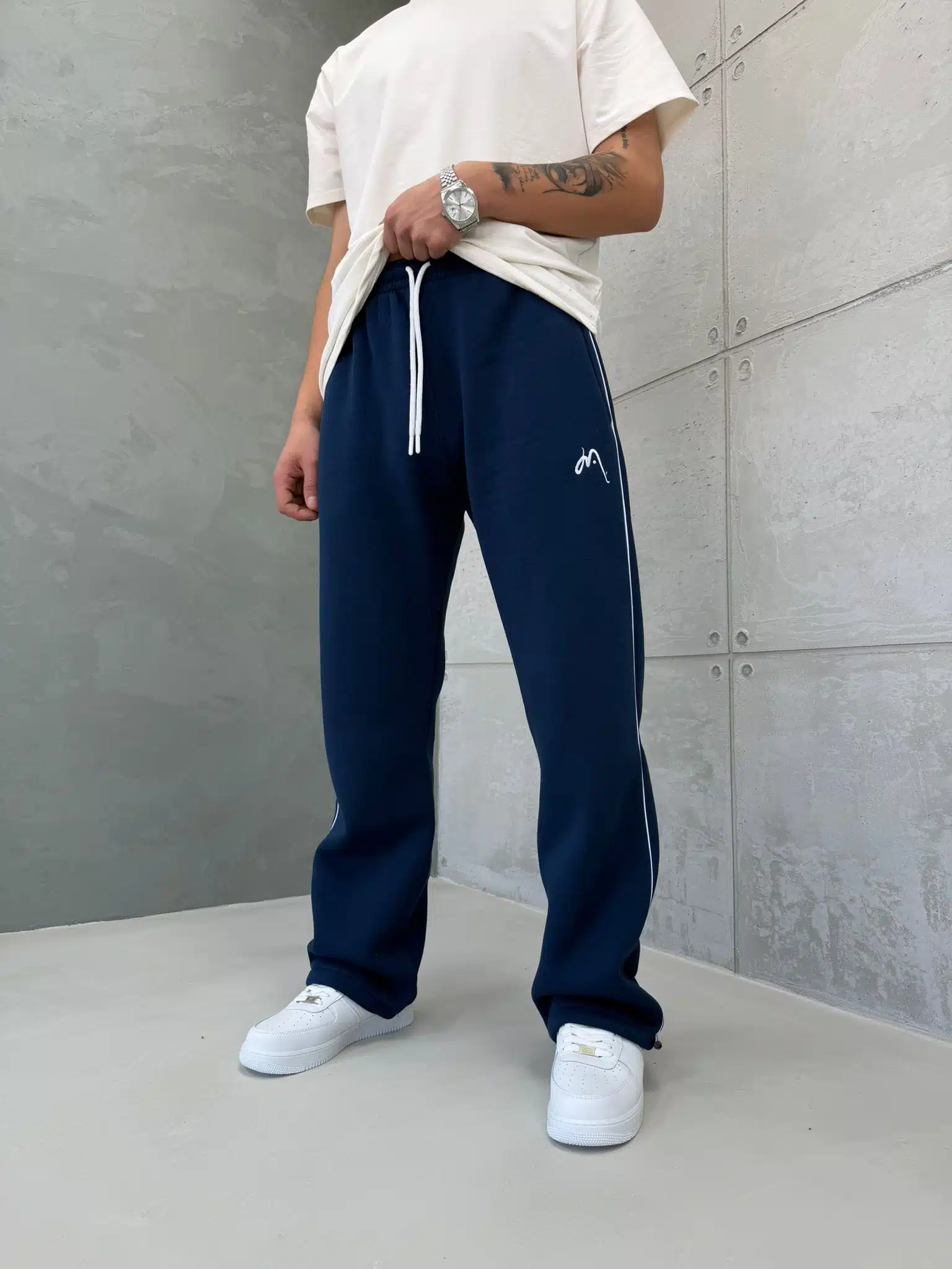 Anasayfa » Mağaza » Premium İmzalı Seri Nakışlı Şeritli Stoper Paça Baggy Eşofman – İndigo