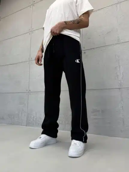 ‘SW’ Büyük Baskılı Lastikli Stoper Paça Baggy Eşofman – Siyah