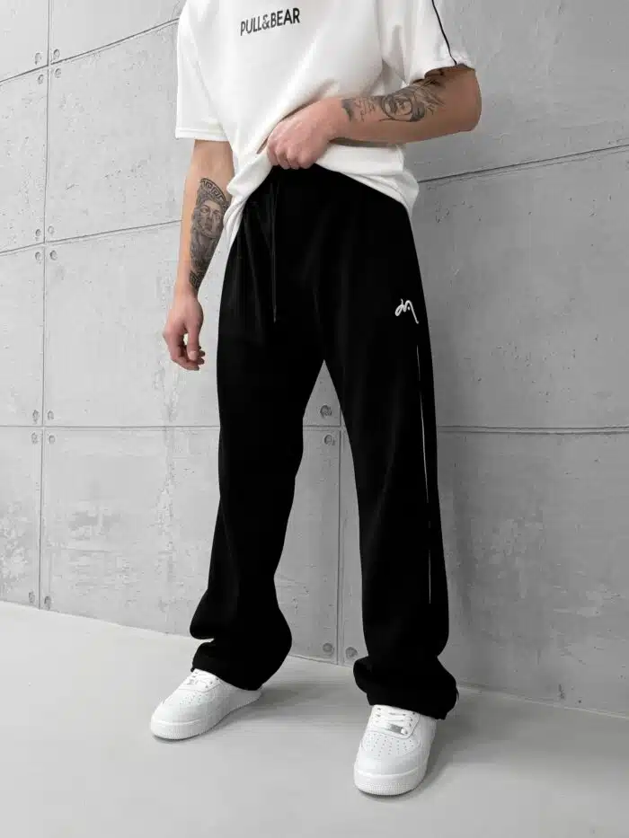 Premium İmzalı Seri Nakışlı Şeritli Stoper Paça Baggy Eşofman – Siyah