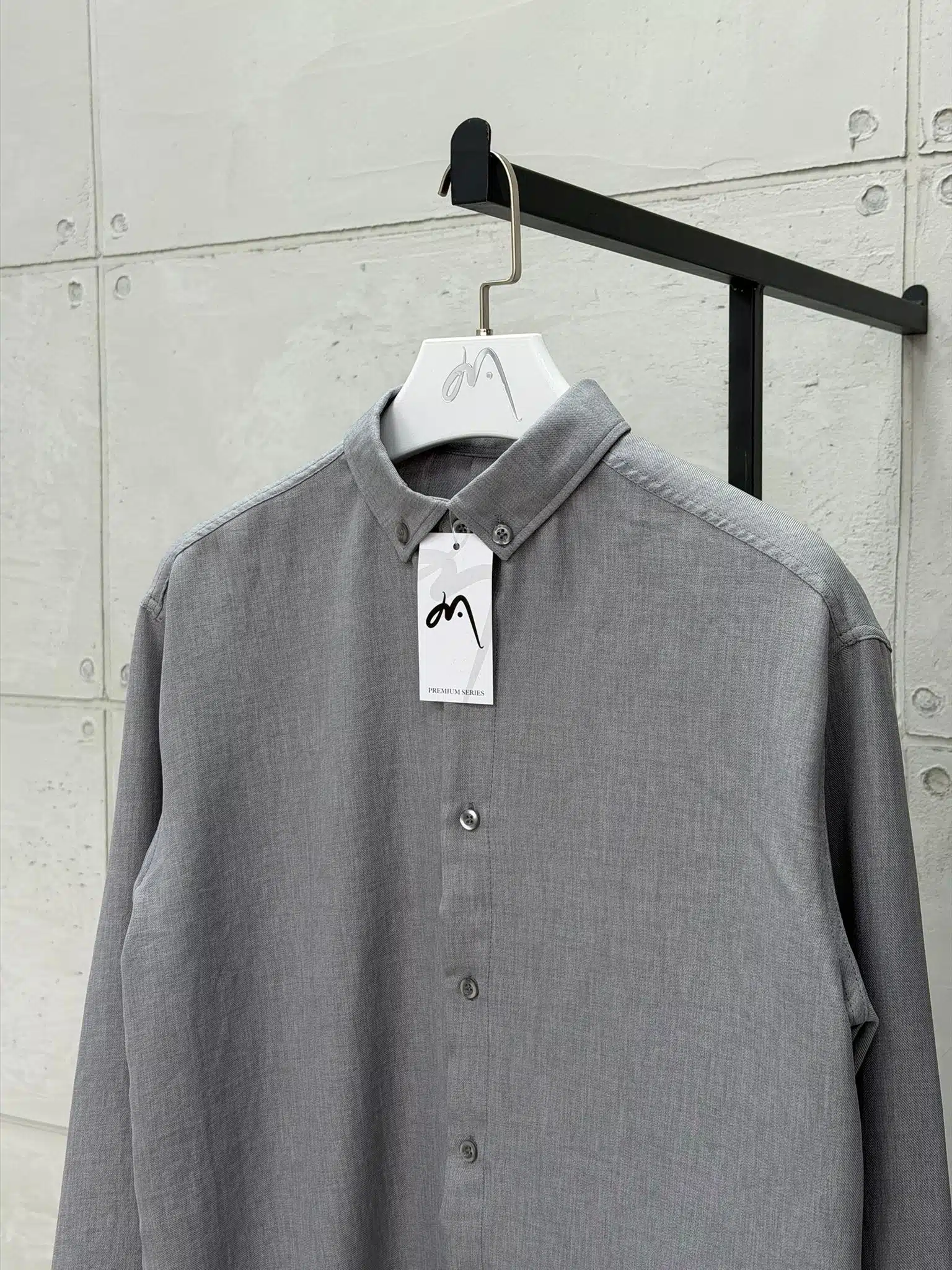 Premium İmzalı Seri Pamuklu Keten Gömlek Regular Fit – Gri