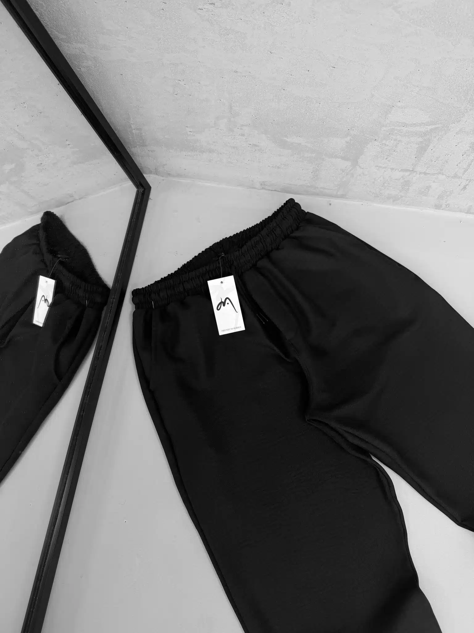 Premium İmzalı Seri Rahat Kalıp Keten Jogger Pantolon -Siyah
