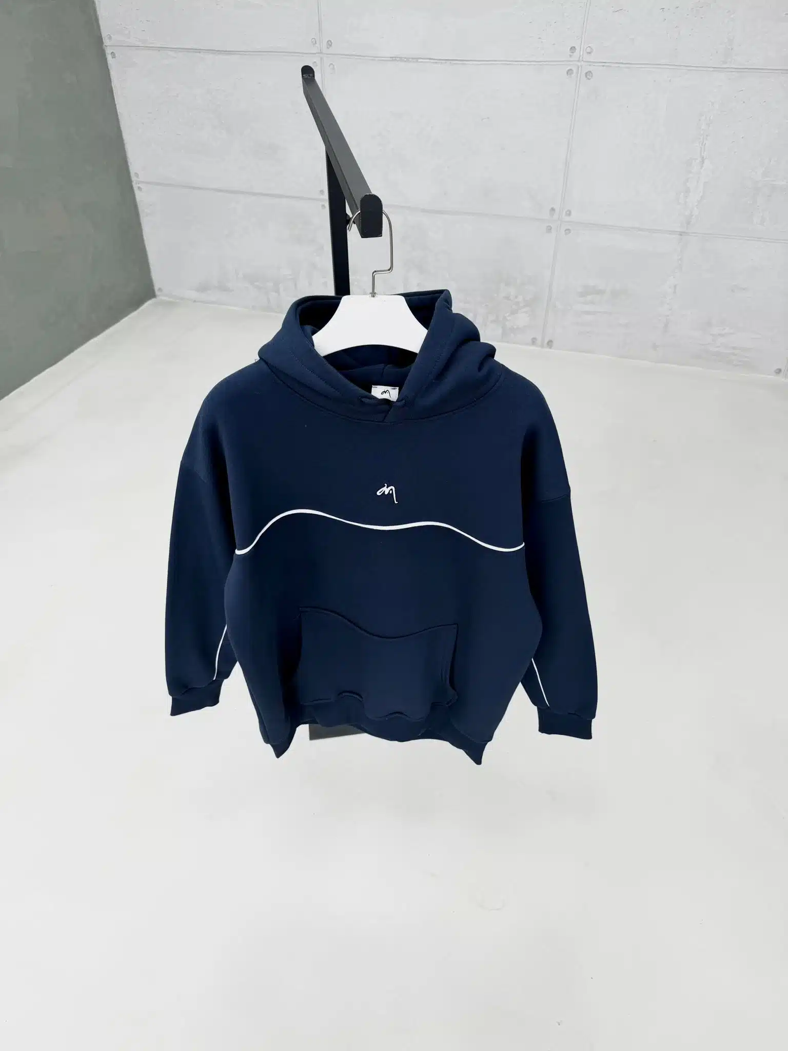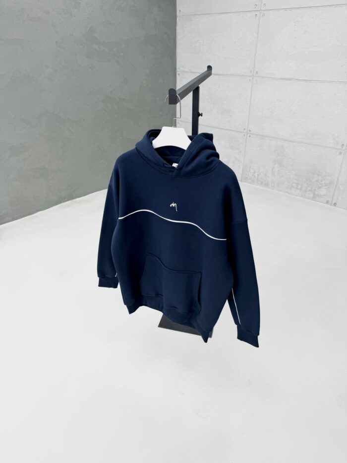 Premium İmzalı Seri Şeritli Nakışlı Kapşonlu Sweatshirt – Lacivert