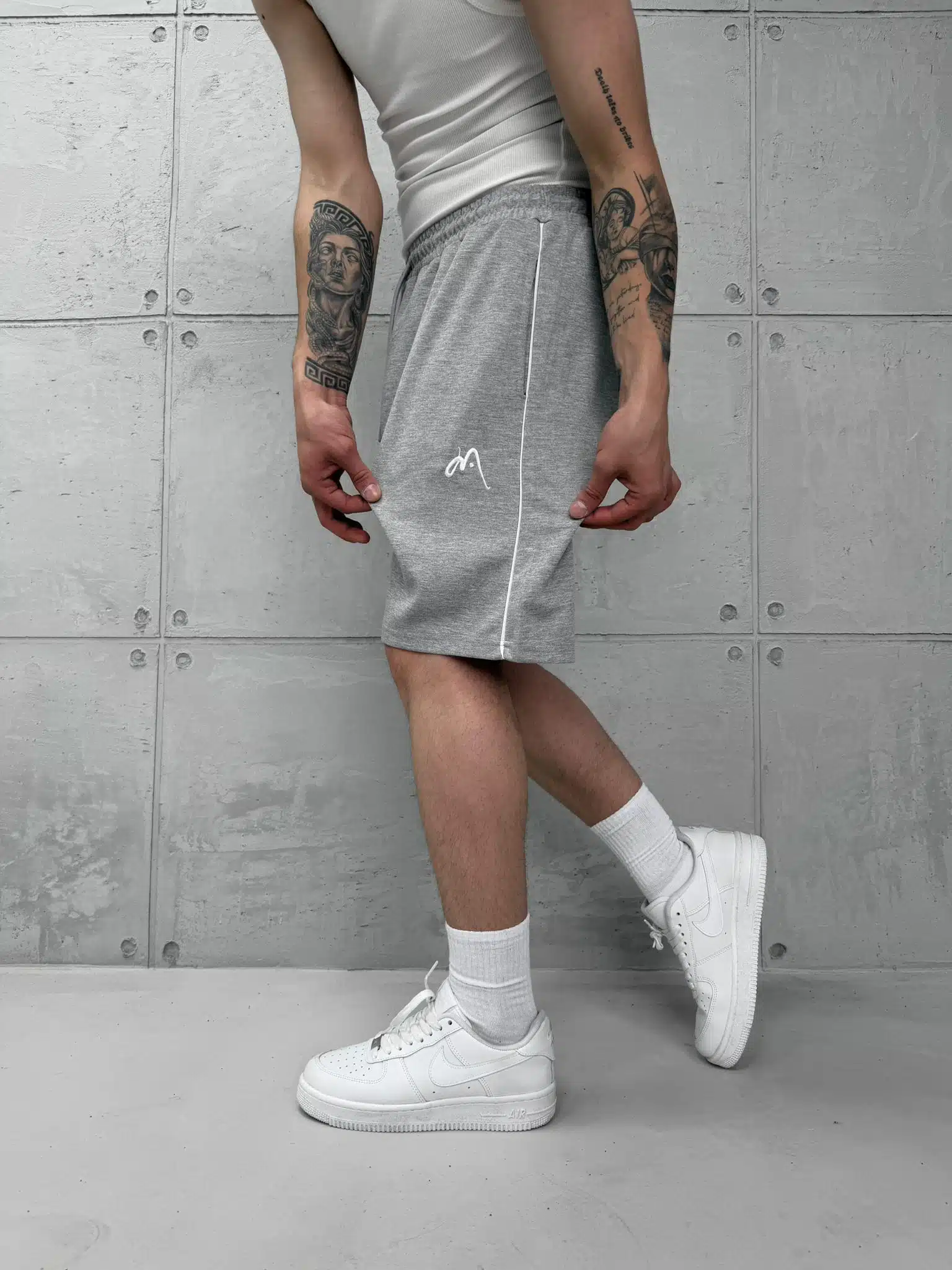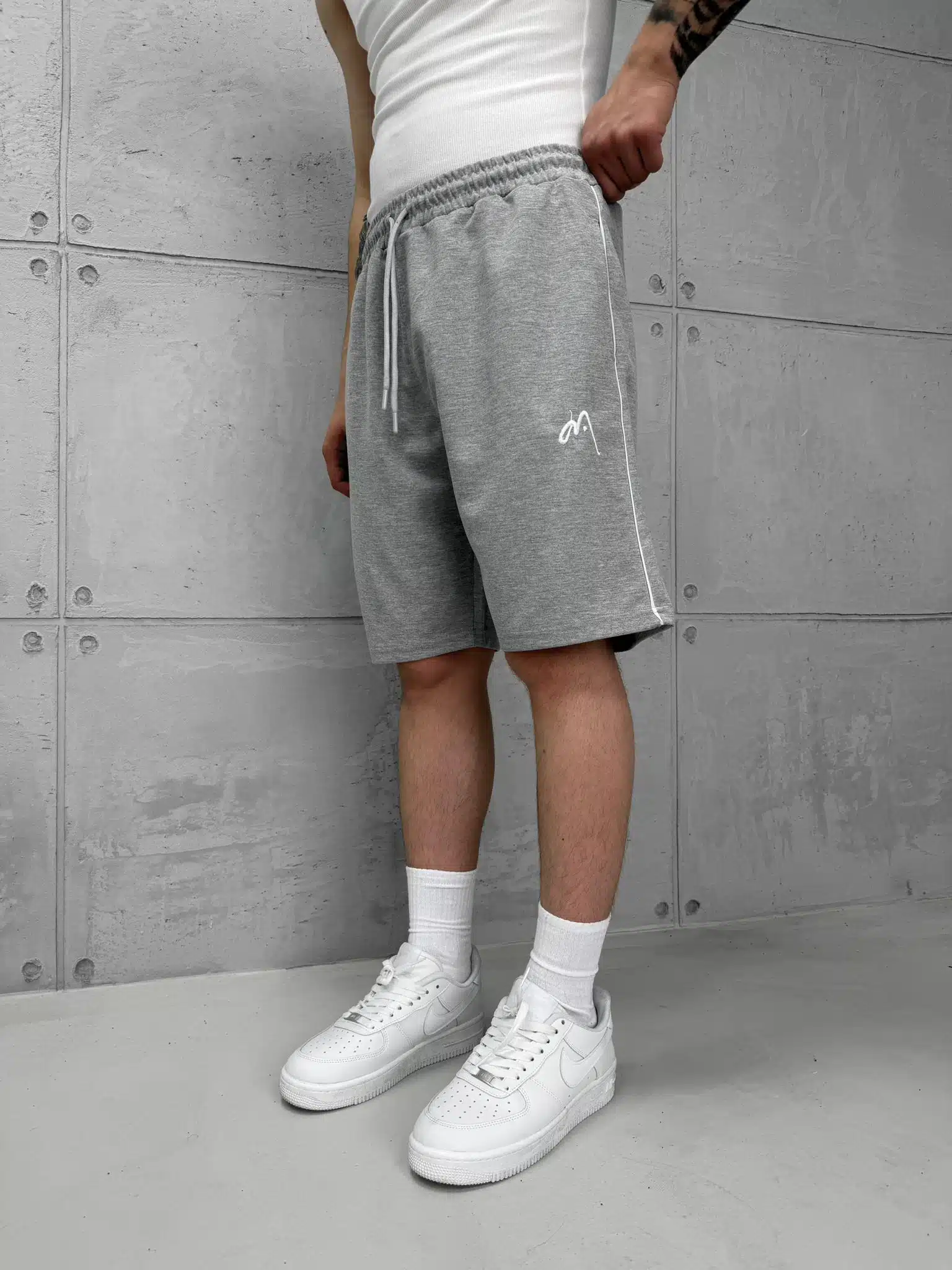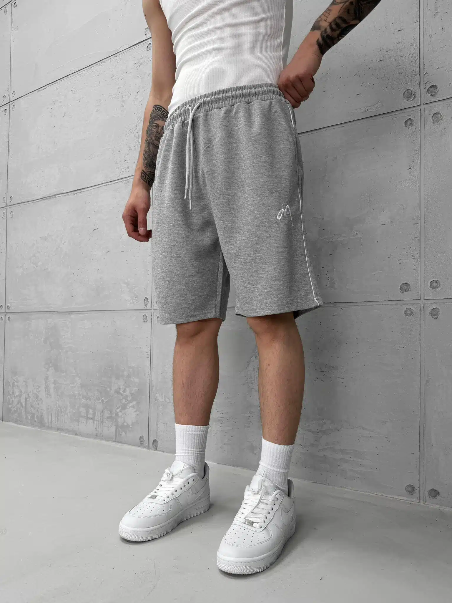 Premıum İmzalı Seri Şeritli Oversize Şort – Gri