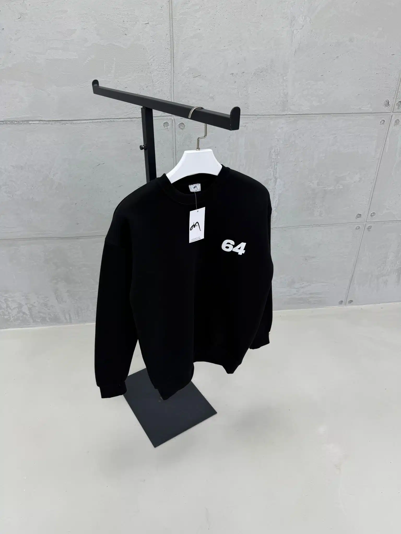 Premium Shootingstar64 Kabartma Baskılı Sweatshirt – Siyah